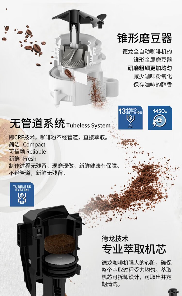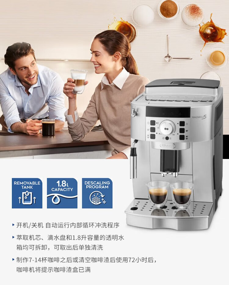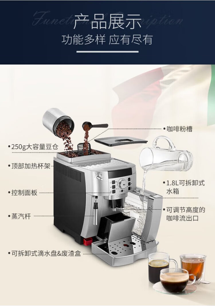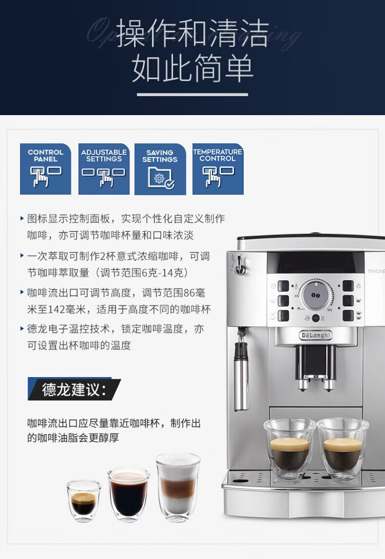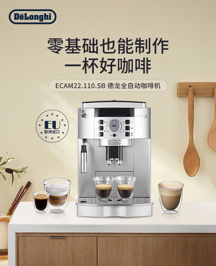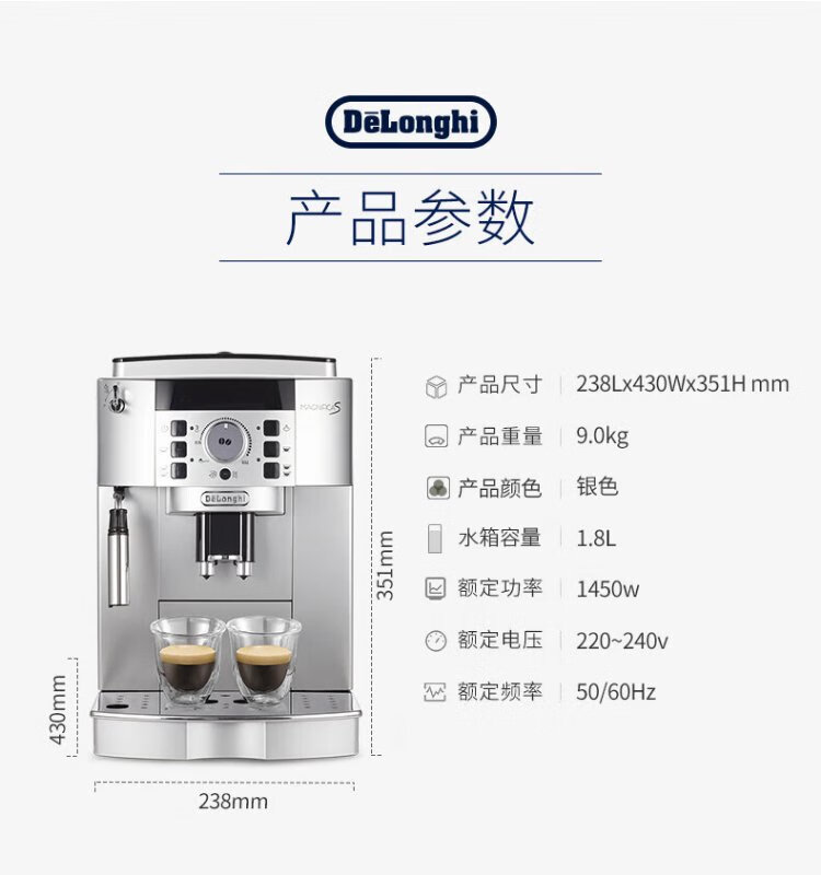 Delonghi coffee machine fully automatic coffee machine imported from Europe for home use with built-in milk frothing system ECAM22.110SB silver