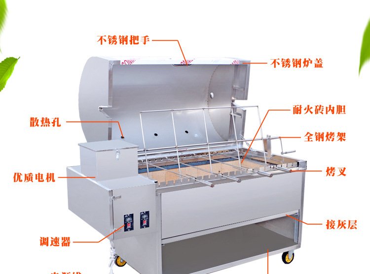 KINKOCCL fully automatic smoke-free stainless steel commercial roasted whole lamb leg integrated stove barbecue storage rack can be customized