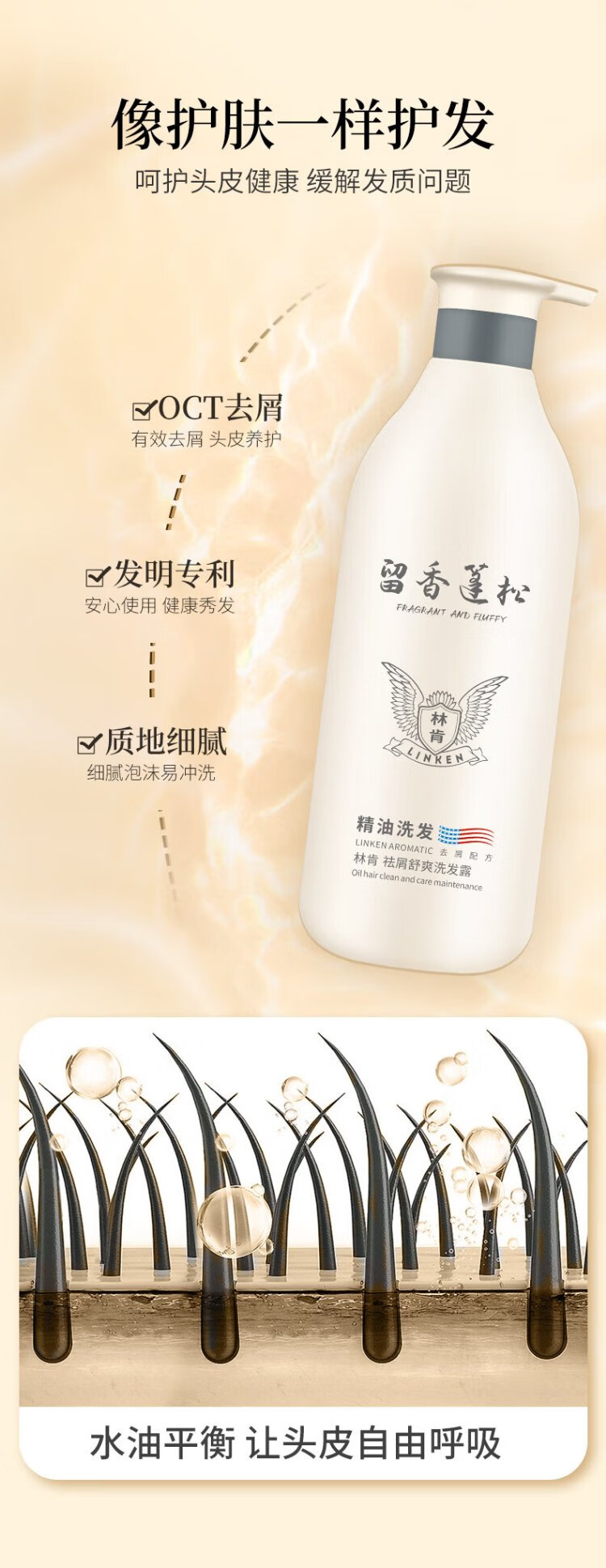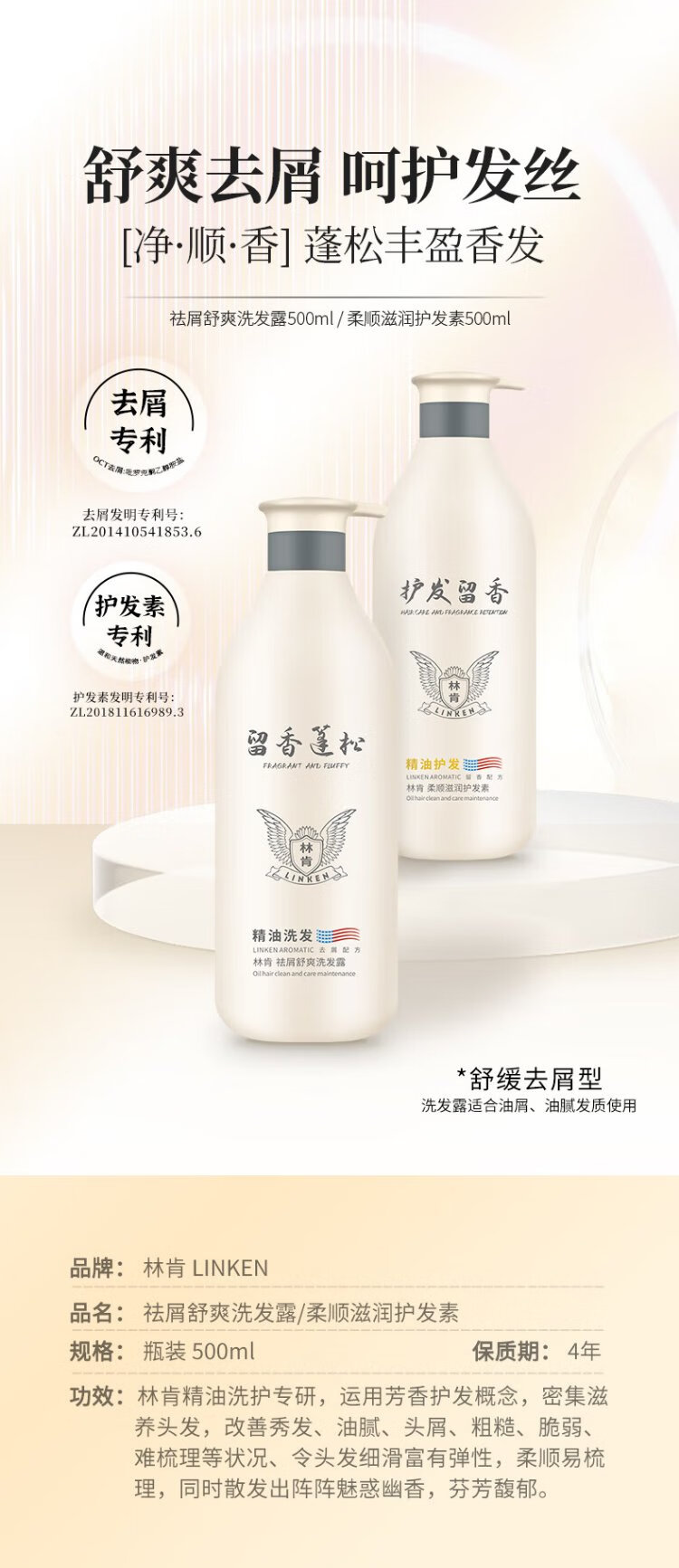 Linken Essential Oil Fluffy Anti-Dandruff Oil Control Shampoo + Smooth Conditioner Fragrant Two-Piece Care Set