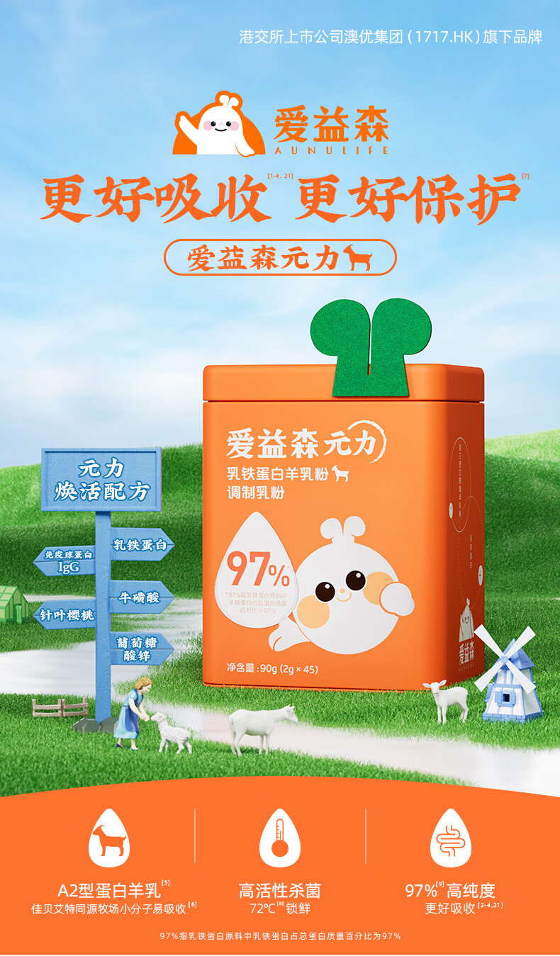 AISON Yuanli Lactoferrin Goat Milk Powder Modified Milk Powder 2g*45 sticks/box Expired in 26.6 months