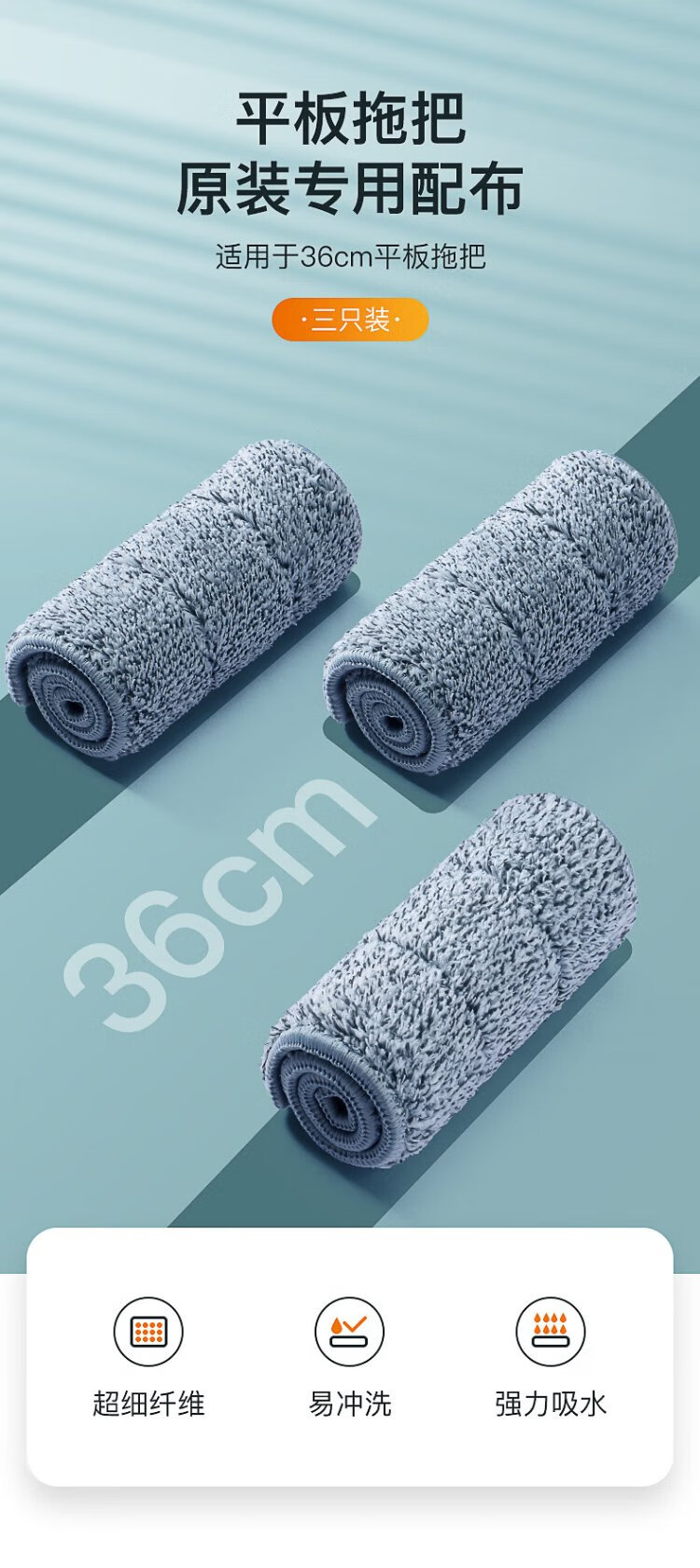 JiaHangShou 36cm hand-washable flat mop with cloth 3 pack 36*11cm