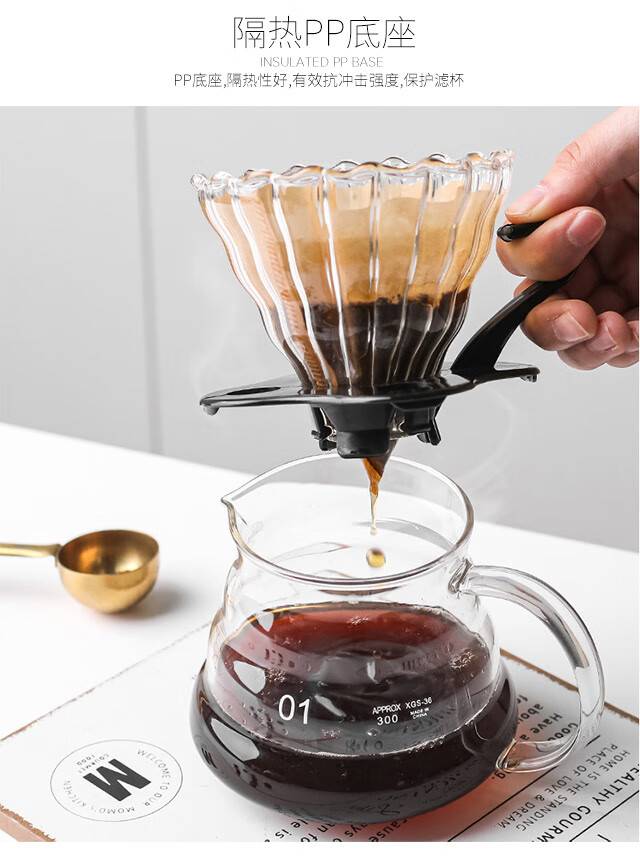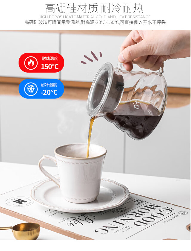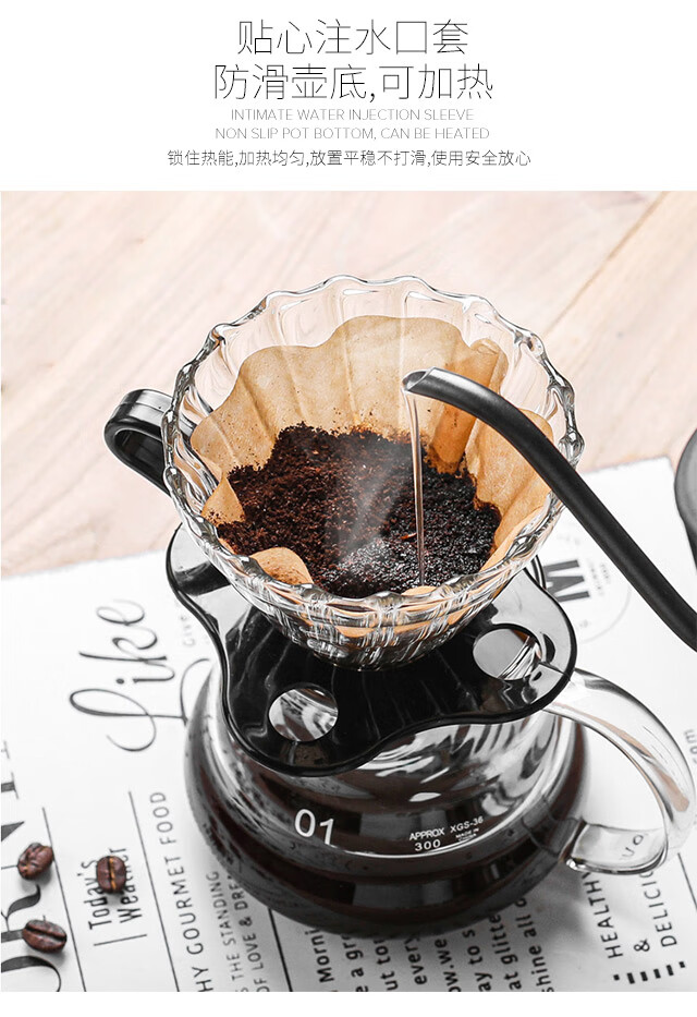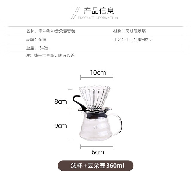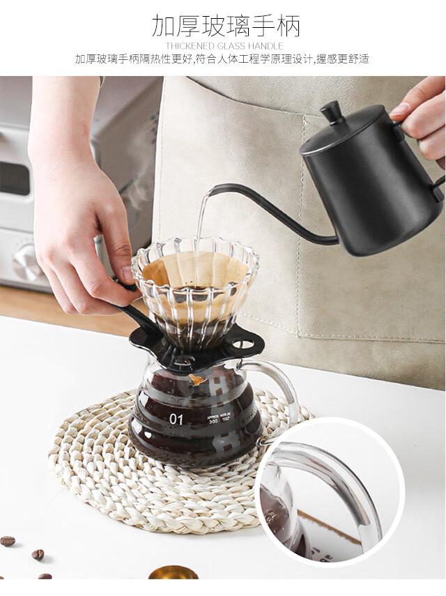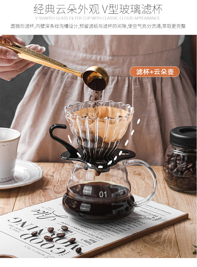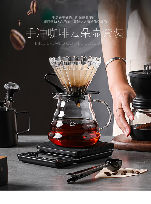 All-purpose hand-brewed coffee pot set, high borosilicate heat-resistant glass coffee cloud pot, hand-brewed drip brewing pot, coffee set