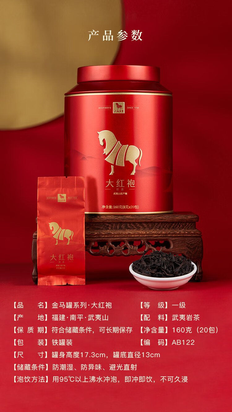Bama Tea Industry Oolong Tea Golden Horse Can Wuyi Rock Tea Dahongpao First Grade 160g Canned Tea for Your Own Drink