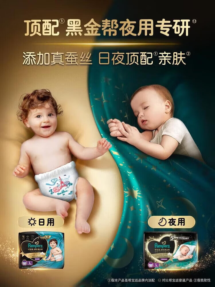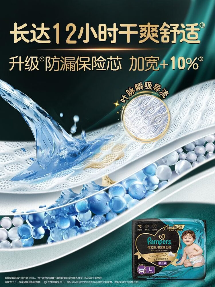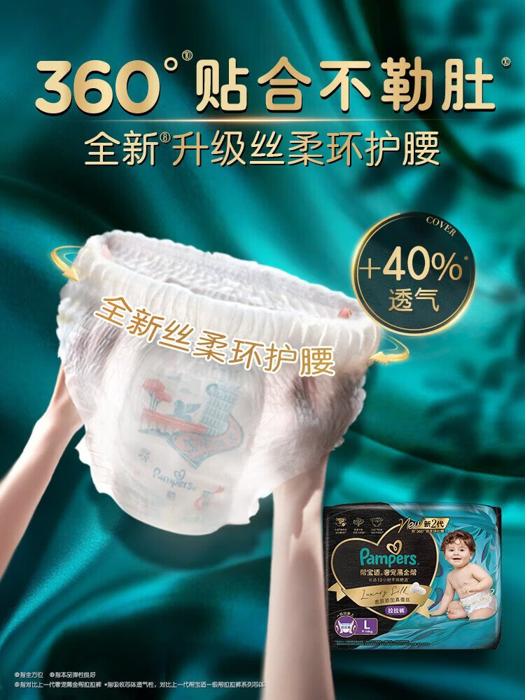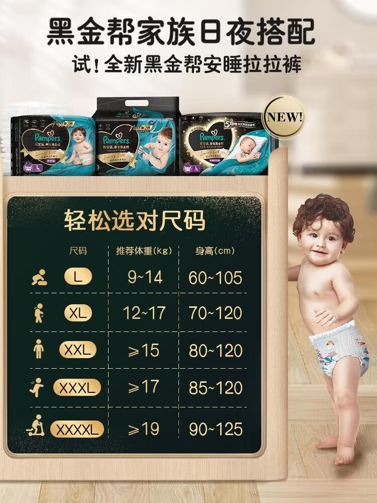 Pampers Breathable Top with Black Gold Pull-Up Pants Newborn Baby Diaper Added Real Silk XL24+3