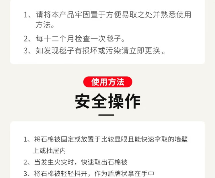 Wenju 1.5m*1.5m double layer asbestos fire blanket fire blanket fire rescue kitchen gas station national standard fire blanket fire certification chemical factory fire 1.5m asbestos quilt fire blanket