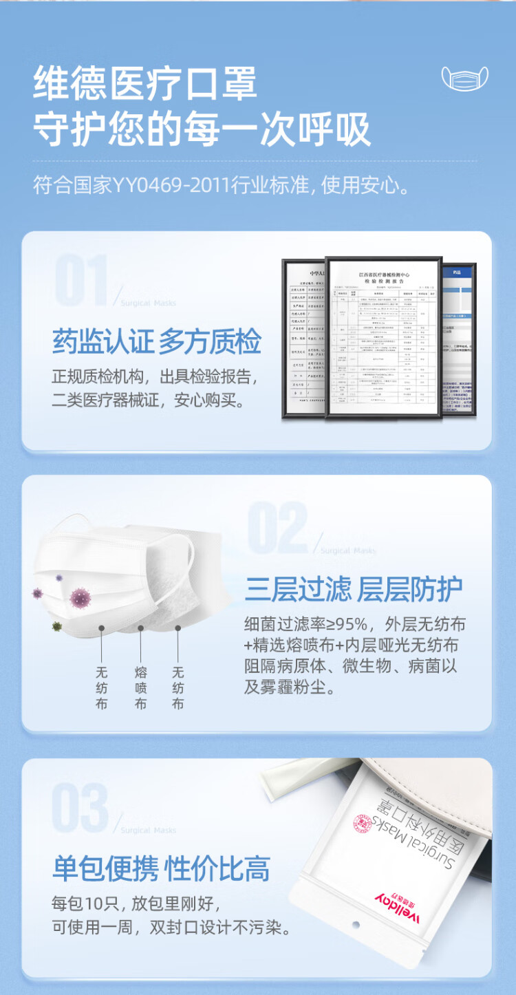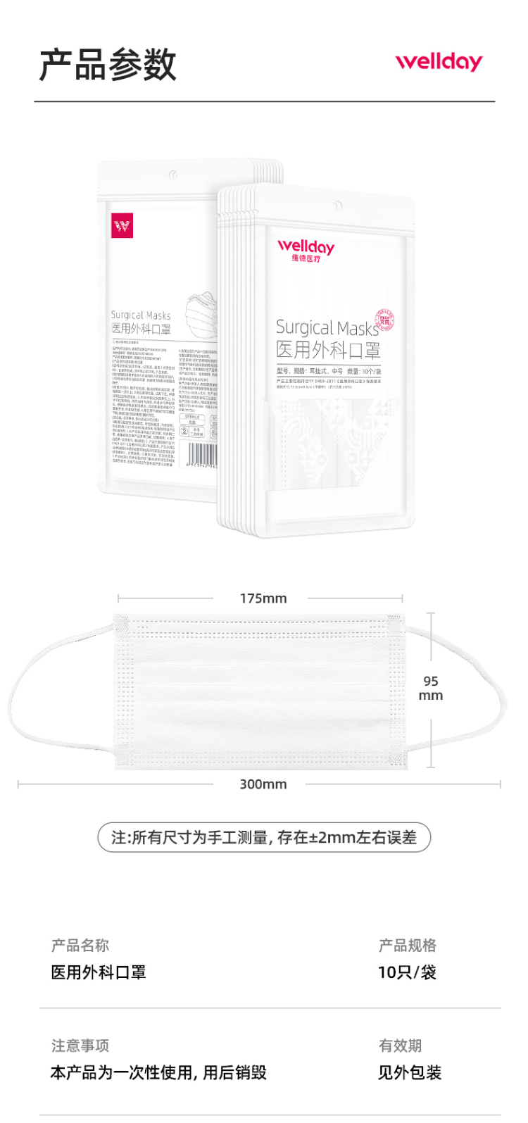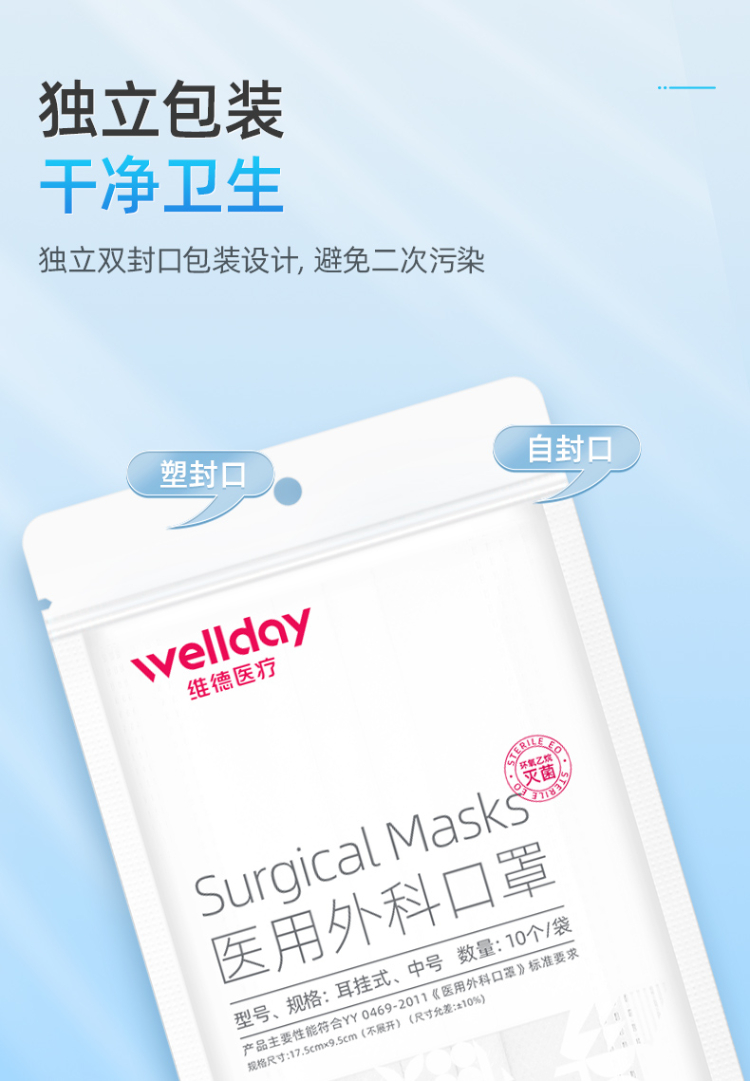 WELLDAY disposable adult medical surgical masks 200 pieces autumn and winter breathable dust-proof and anti-pollen haze masks sterilization grade