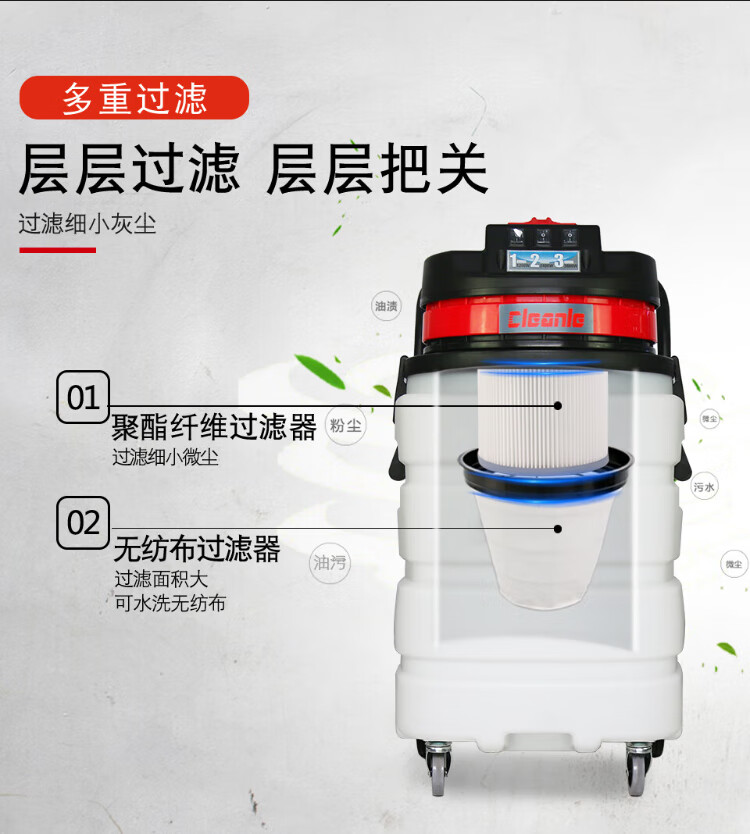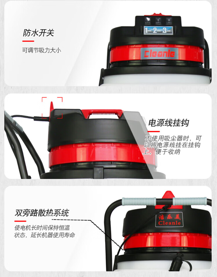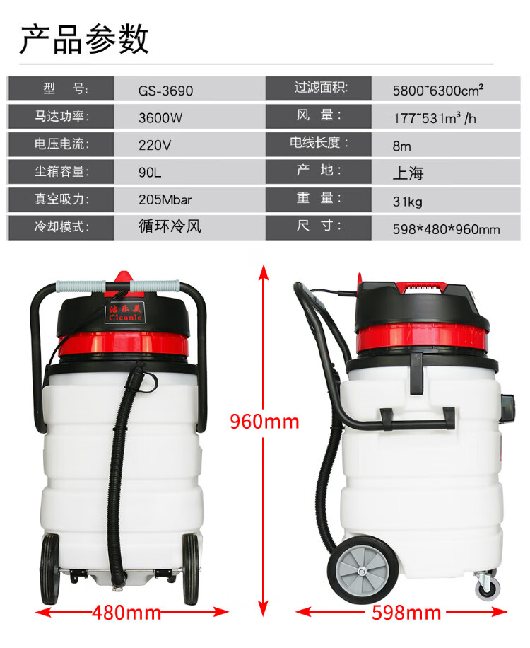 Cleanle GS-3690 Industrial Vacuum Cleaner Acid and Alkali Resistant Vacuum and Water Suction Machine Factory Workshop Dust Removal and Oil Suction Machine