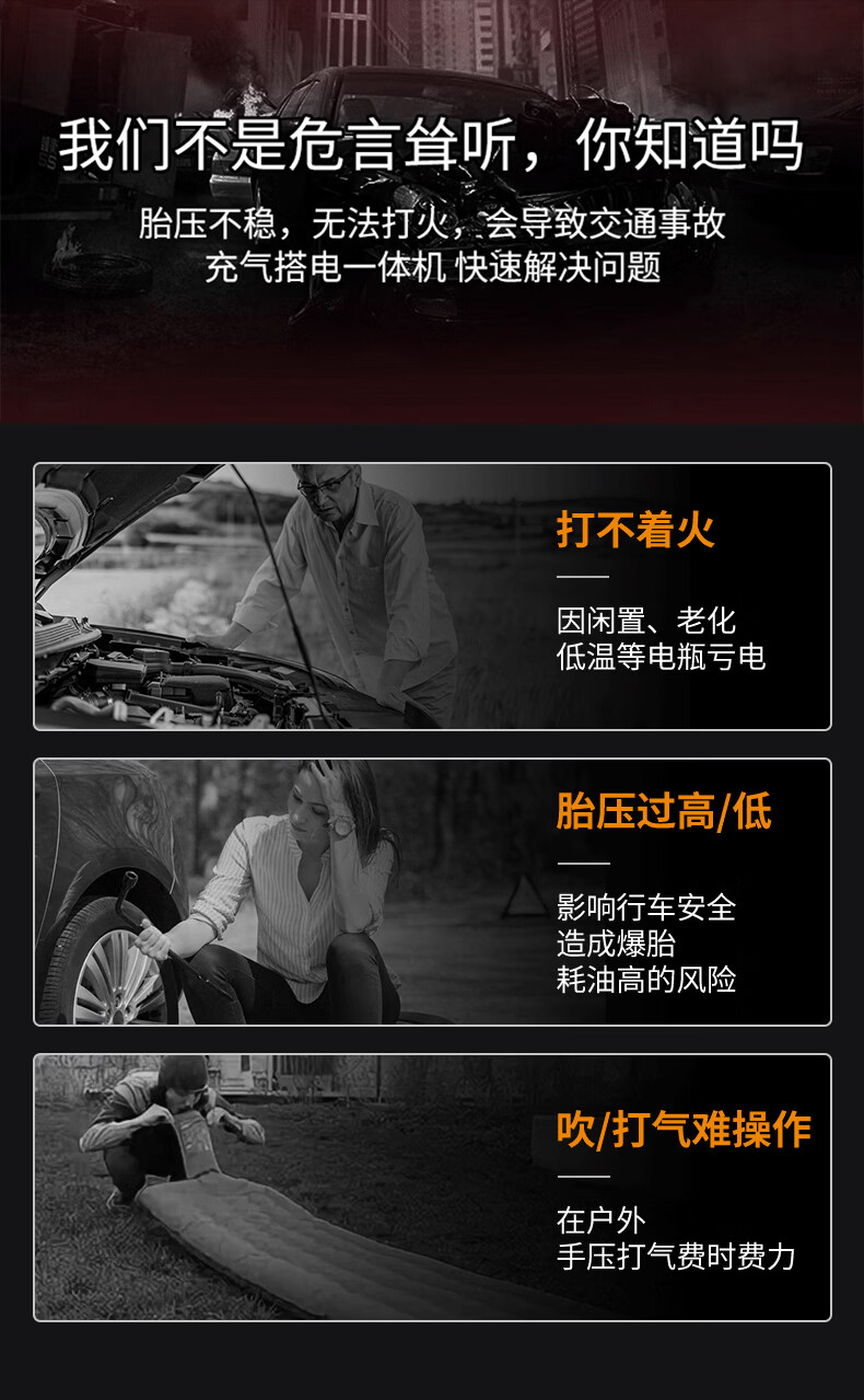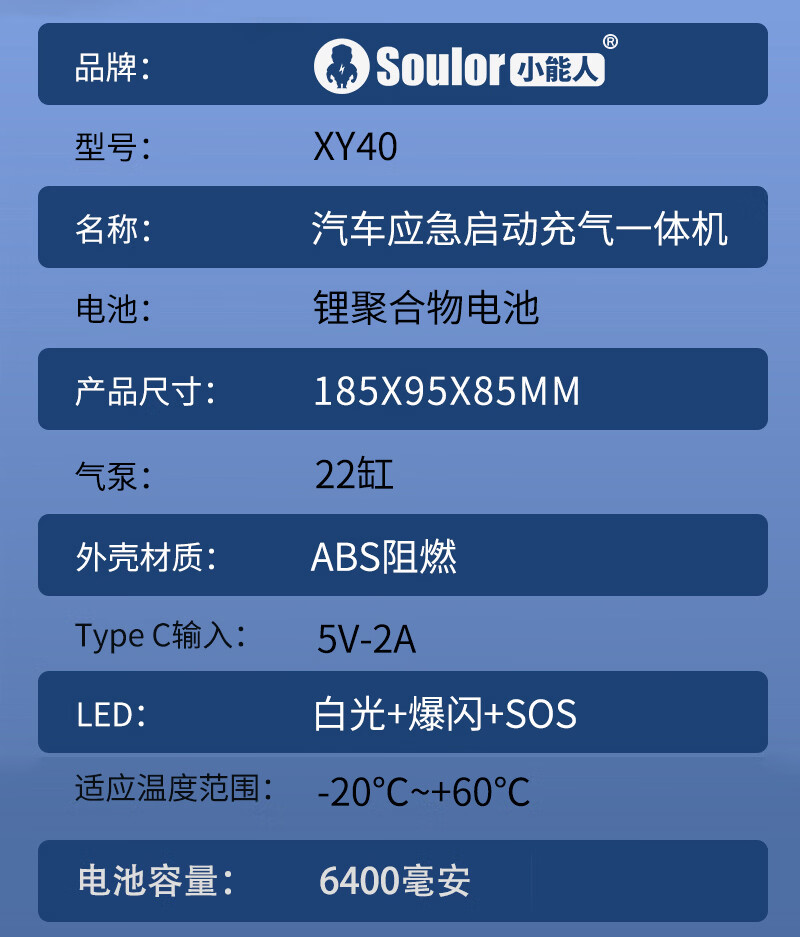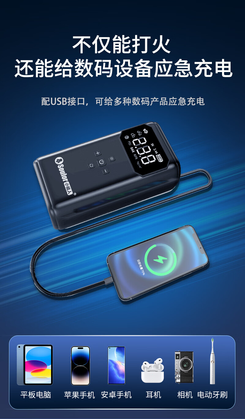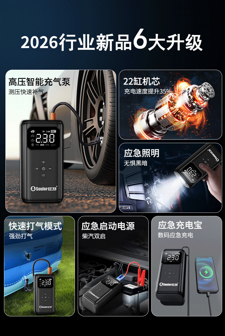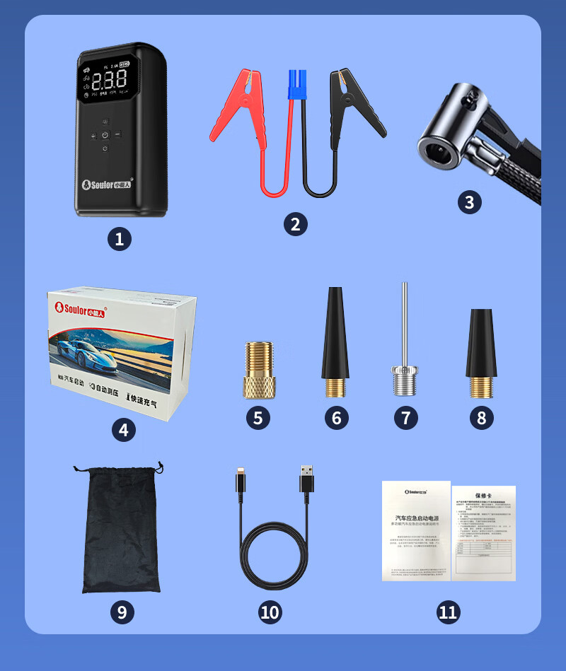 Soulor 3C certified car emergency starting power supply air pump all-in-one equipment emergency power bank car battery charger tire air pump