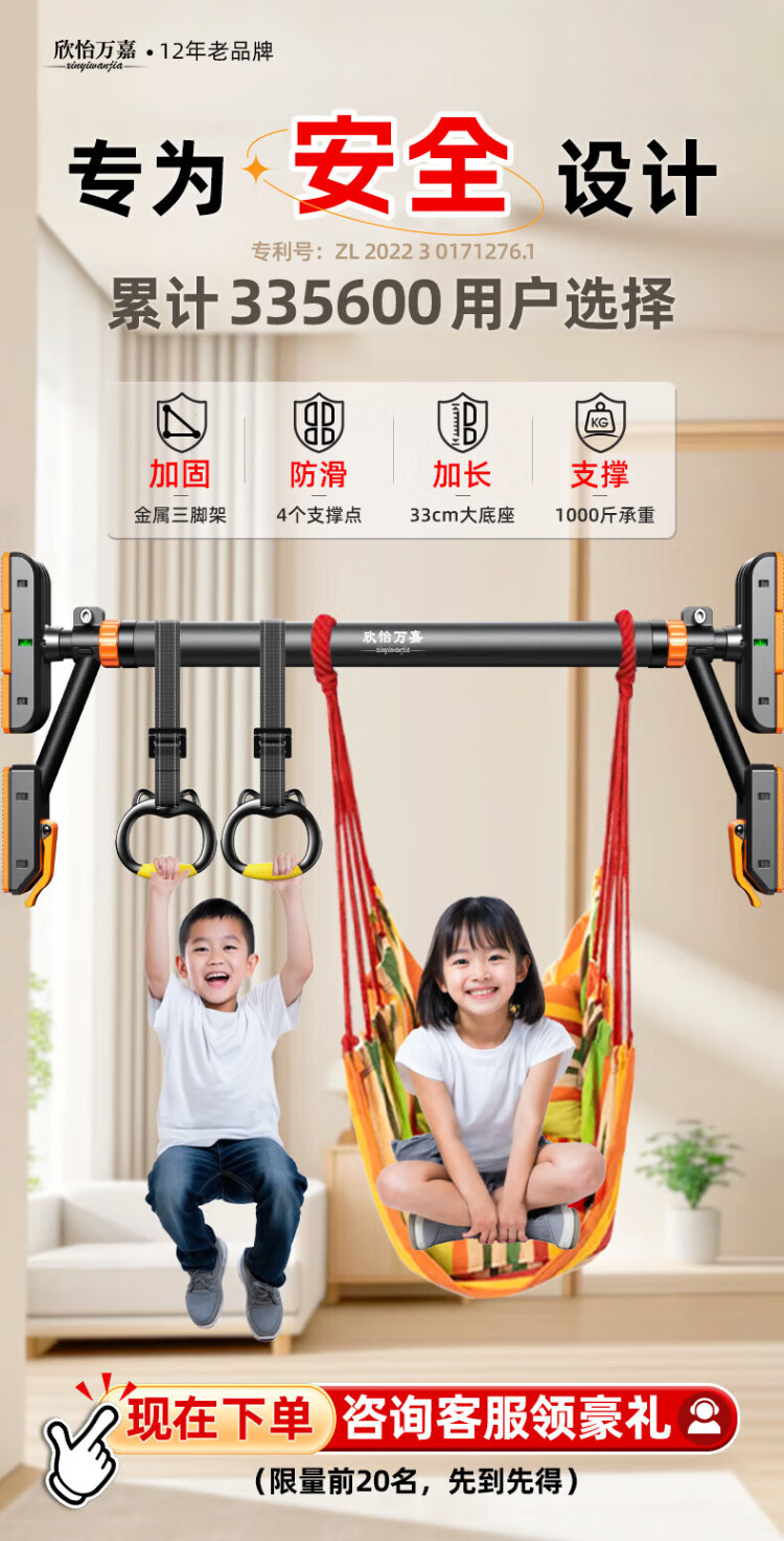 Xinyi Wanjia horizontal bar indoor pull-up equipment household door rack without punching children's single and parallel bars adult family floor-standing