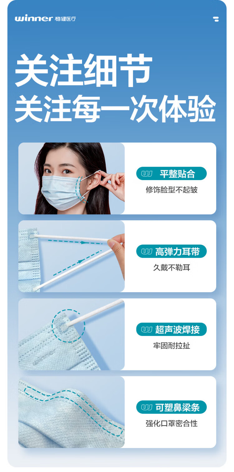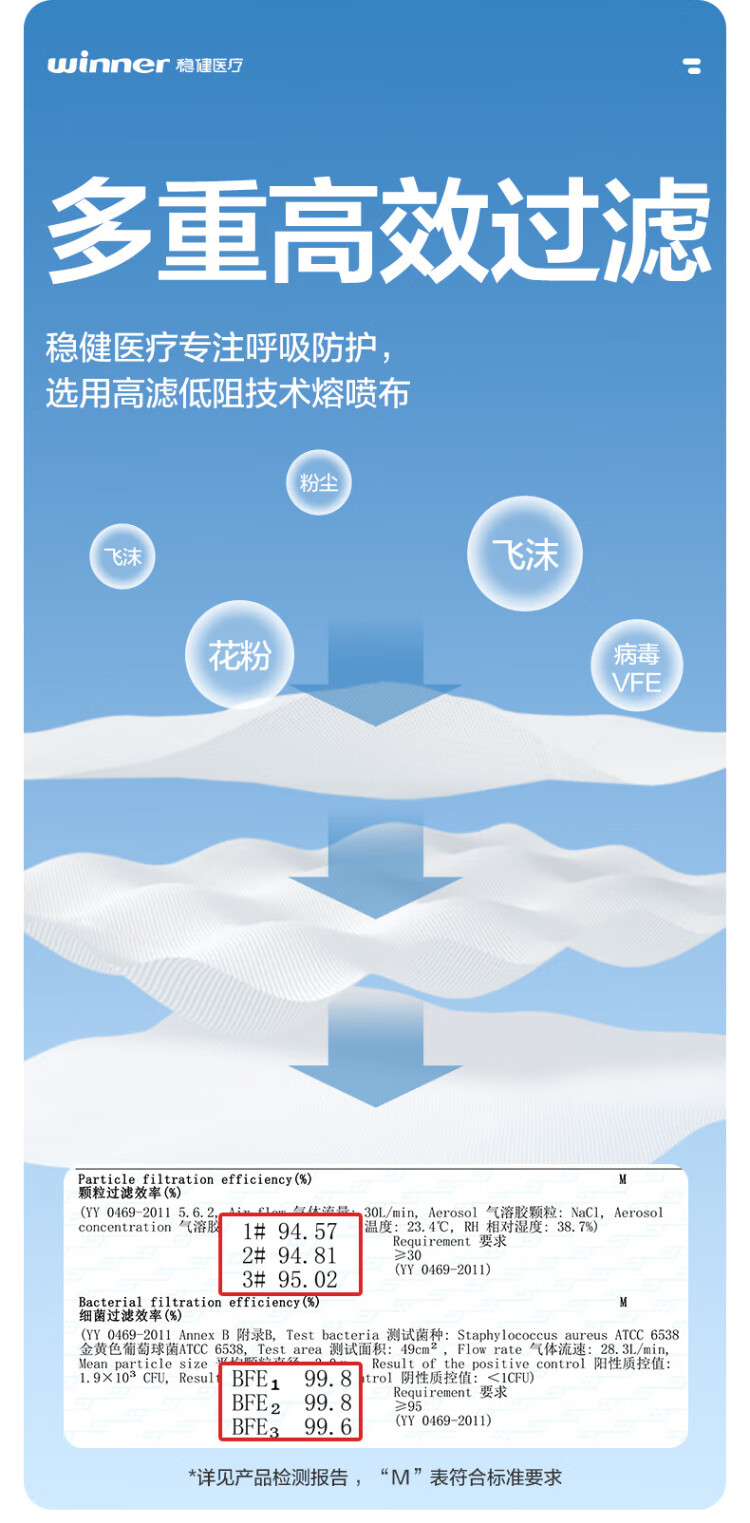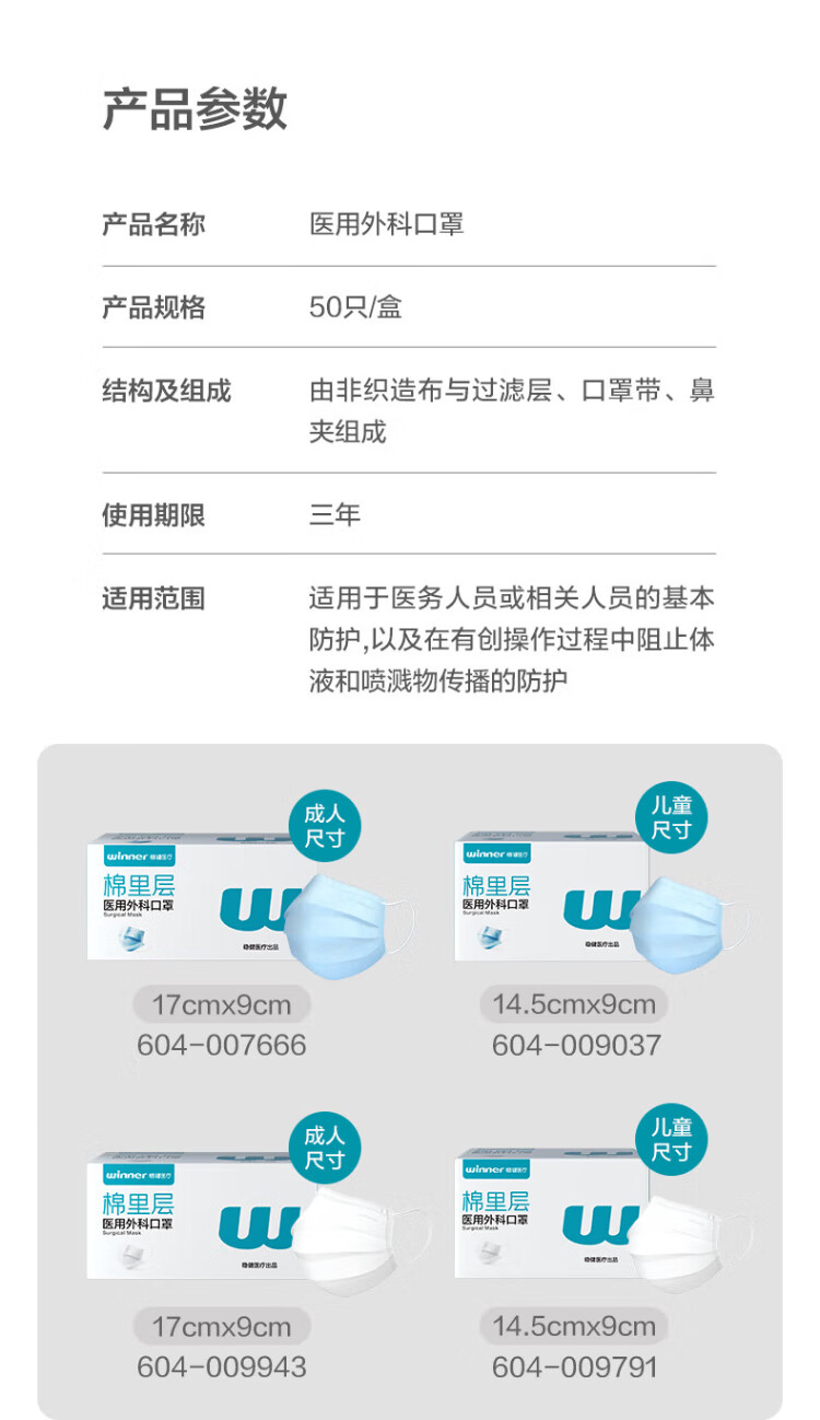 Robust disposable mask medical surgical mask for children 6-12 years old three-layer protective bacterial filtration rate 95% 50 pieces