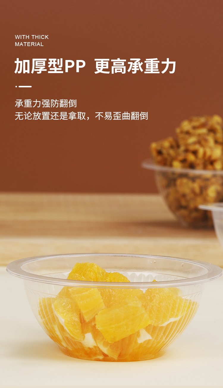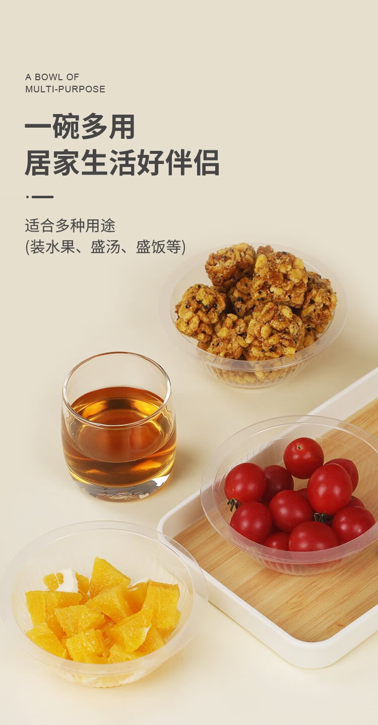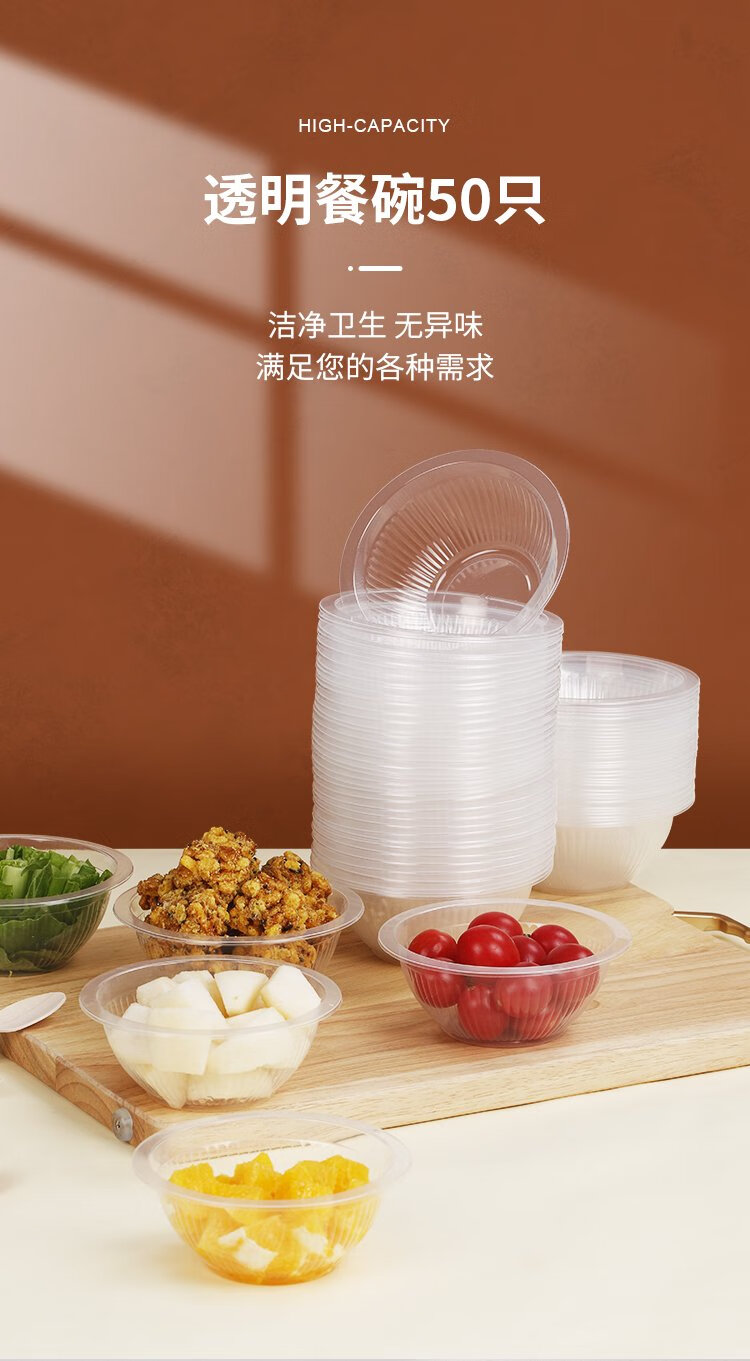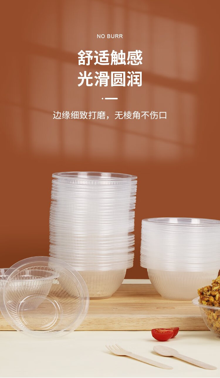 Youao disposable bowl 345ml*50 thick transparent dumplings and glutinous rice balls soup bowl outdoor picnic camping tableware no wash