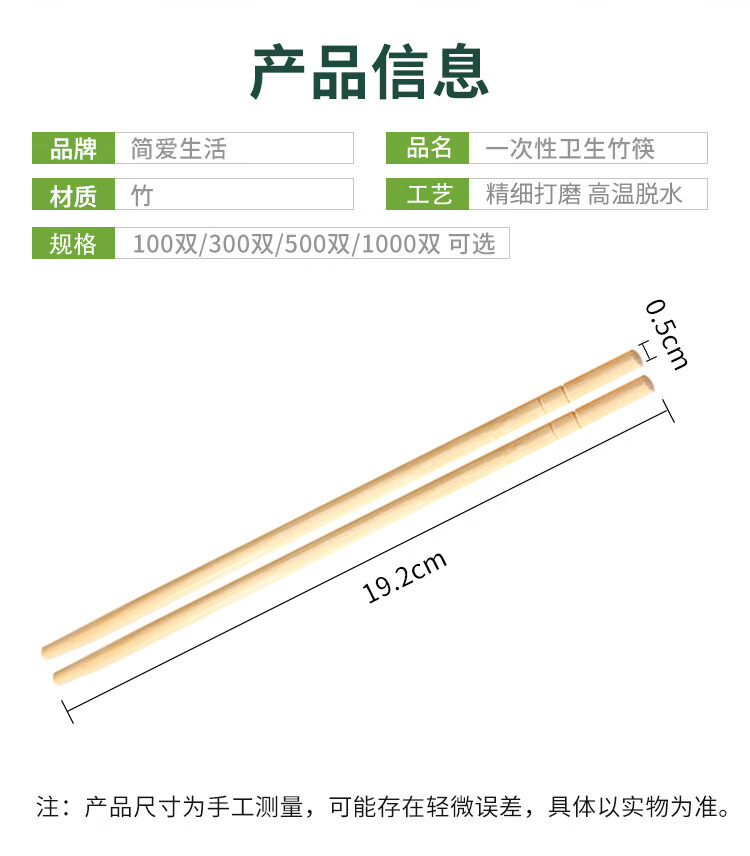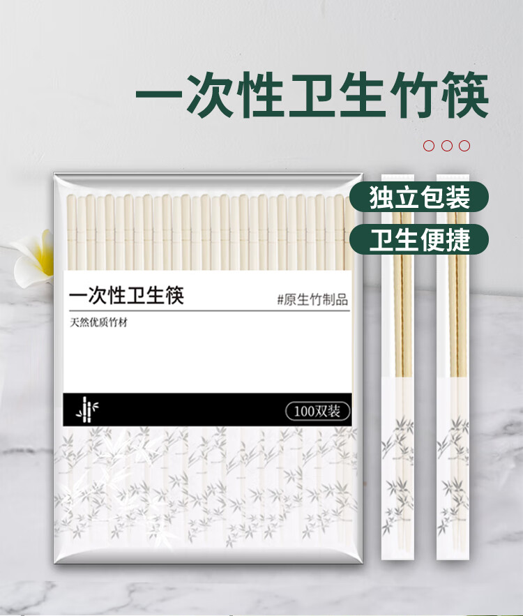 Jane Eyre Life Disposable Chopsticks 100 Pairs Independently Packaged Household Bamboo Chopsticks Convenient Chopsticks Camping Fast Food Convenient Takeaway Tableware