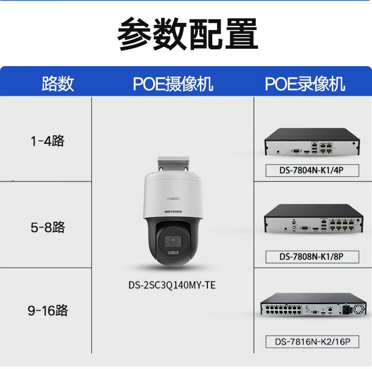 Hikvision camera surveillance set 2-channel 4 million full-color night vision outdoor network cable power supply PTZ rotation voice intercom 2T hard drive 140MY-TE solution