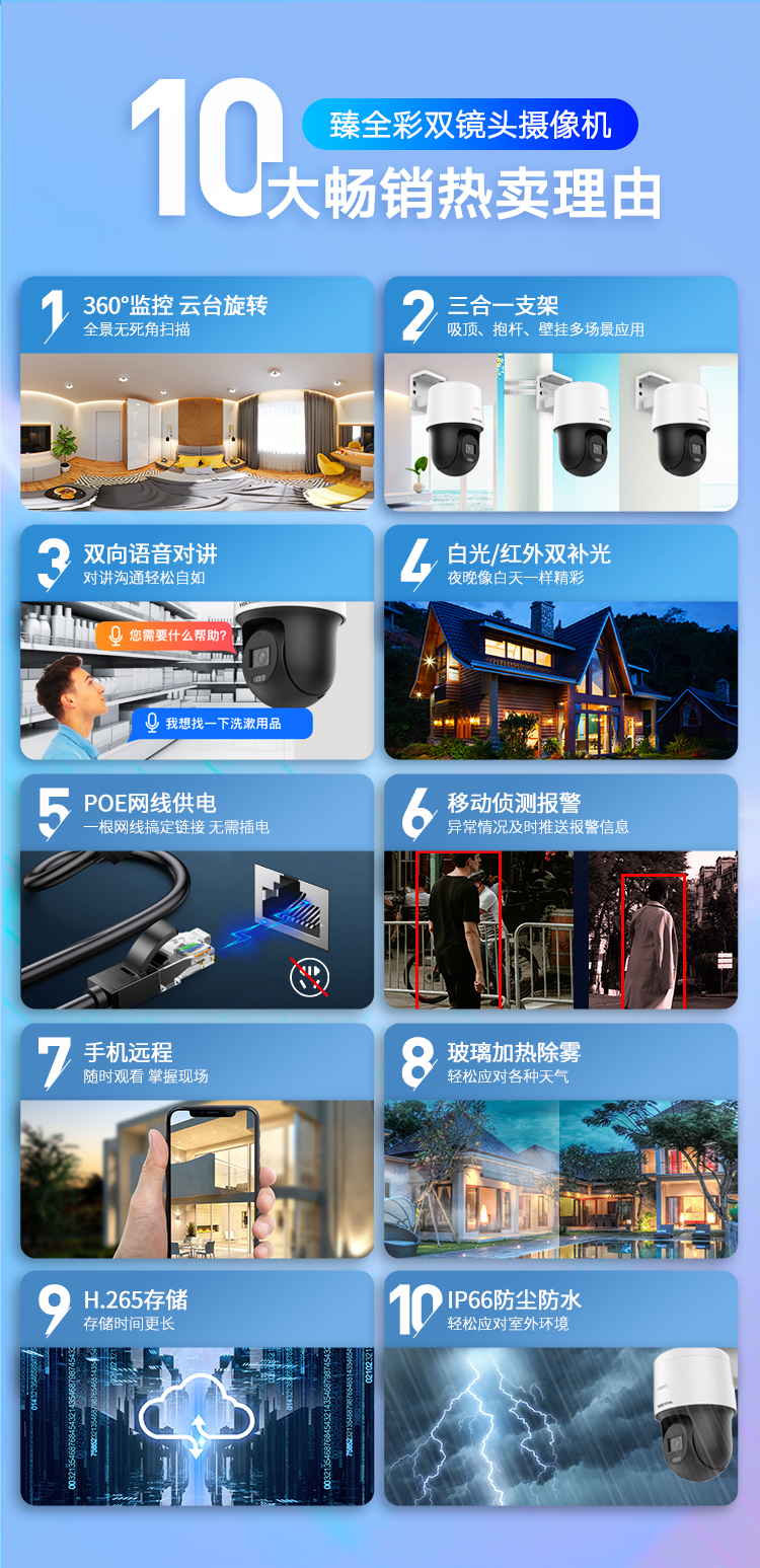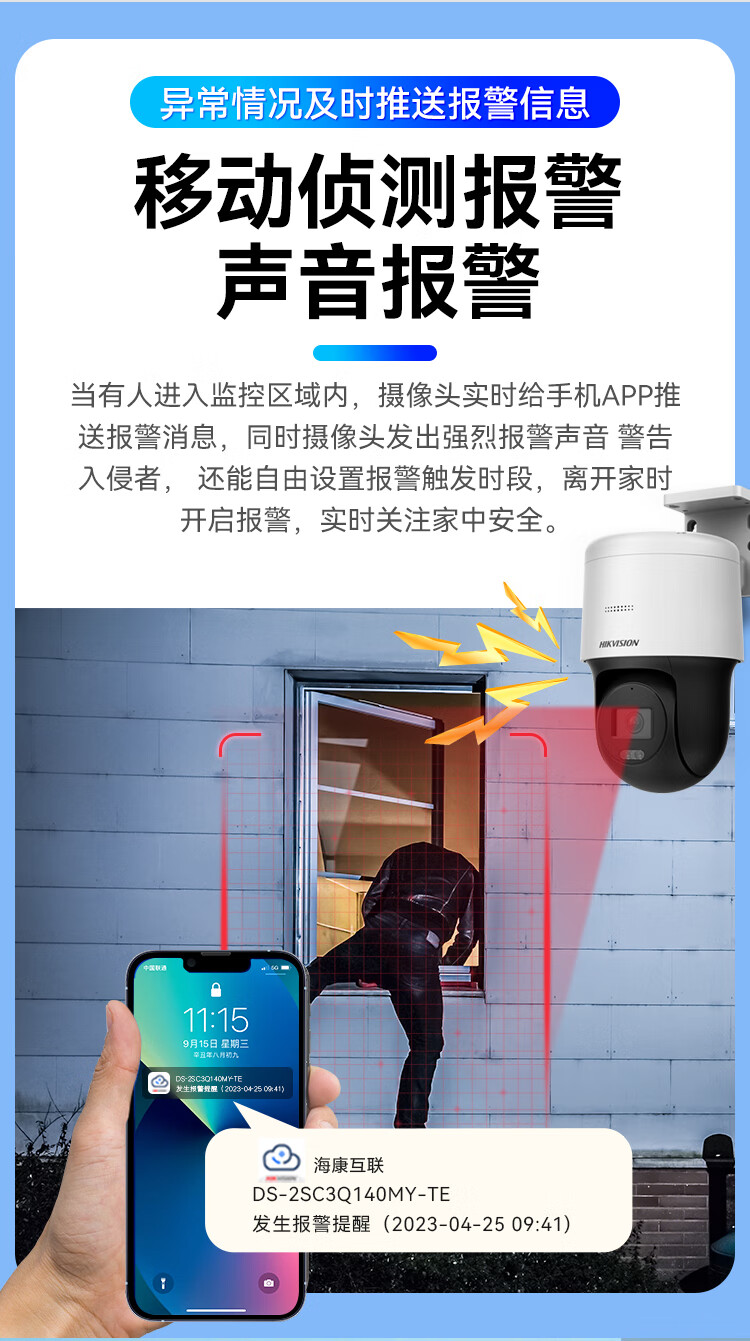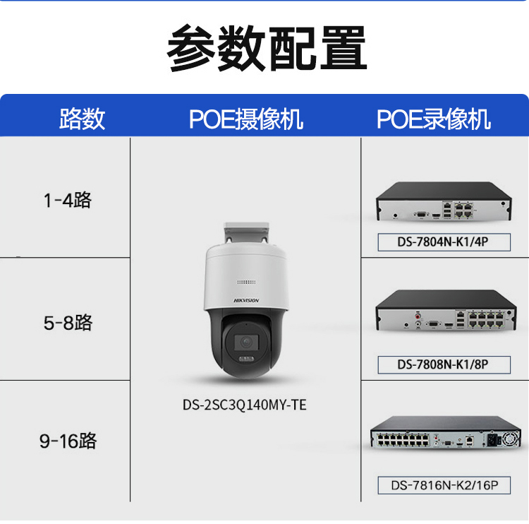 Hikvision camera surveillance set 3-way 4 million full-color night vision outdoor network cable power supply PTZ rotation voice intercom 4T hard drive 140MY-TE solution