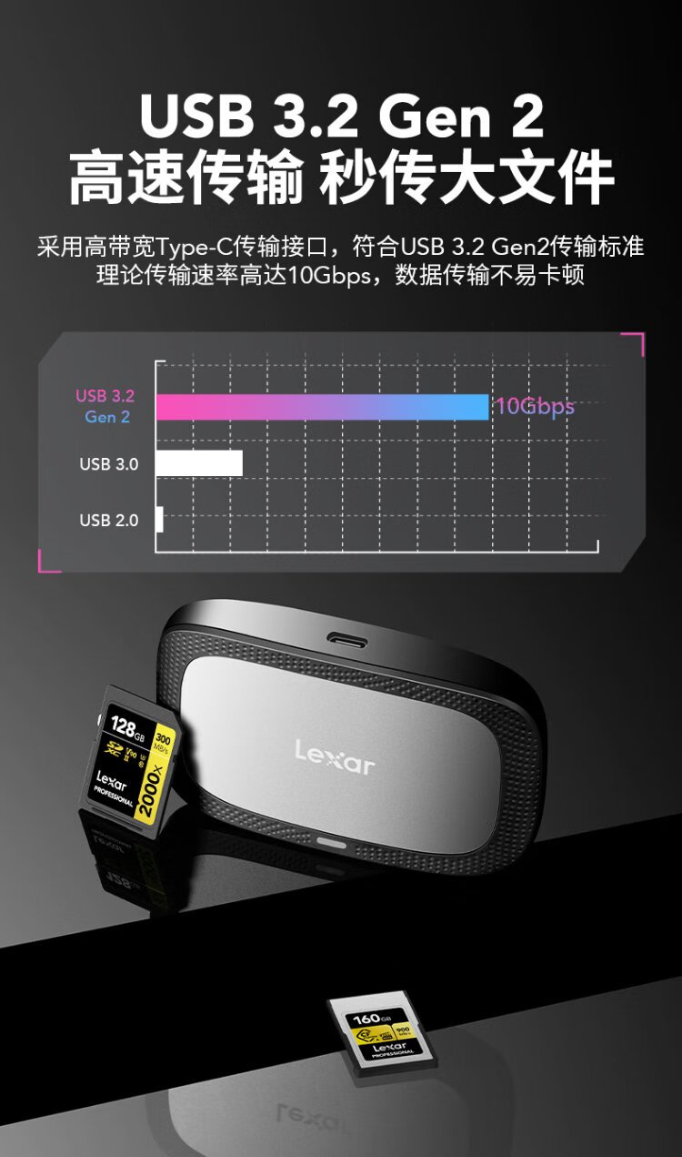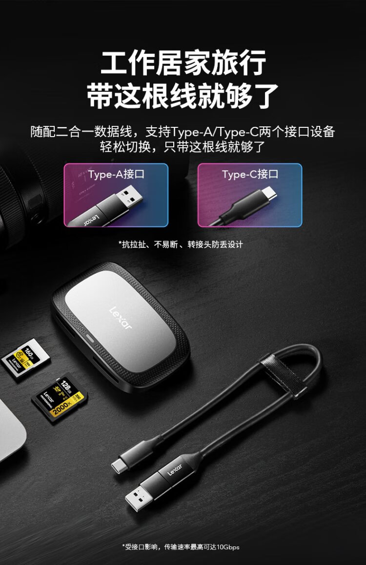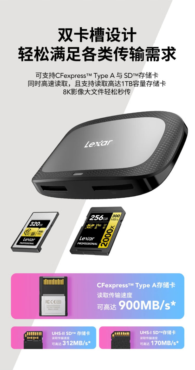 Lexar USB 3.2 high-speed card reader 2-in-1 CFexpress Type A/SD dual card reading comes with 2-in-1 data cable