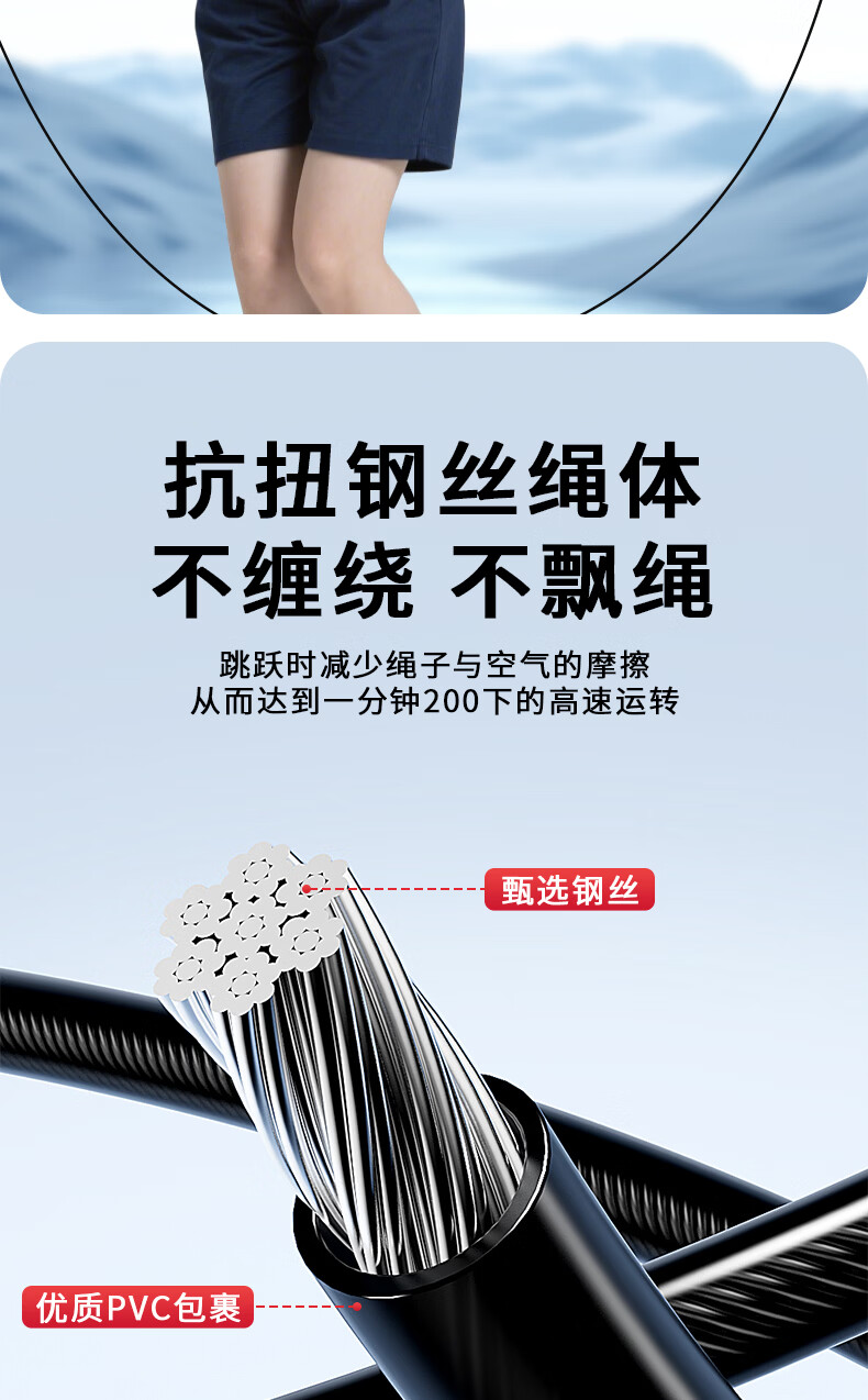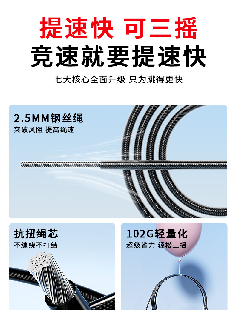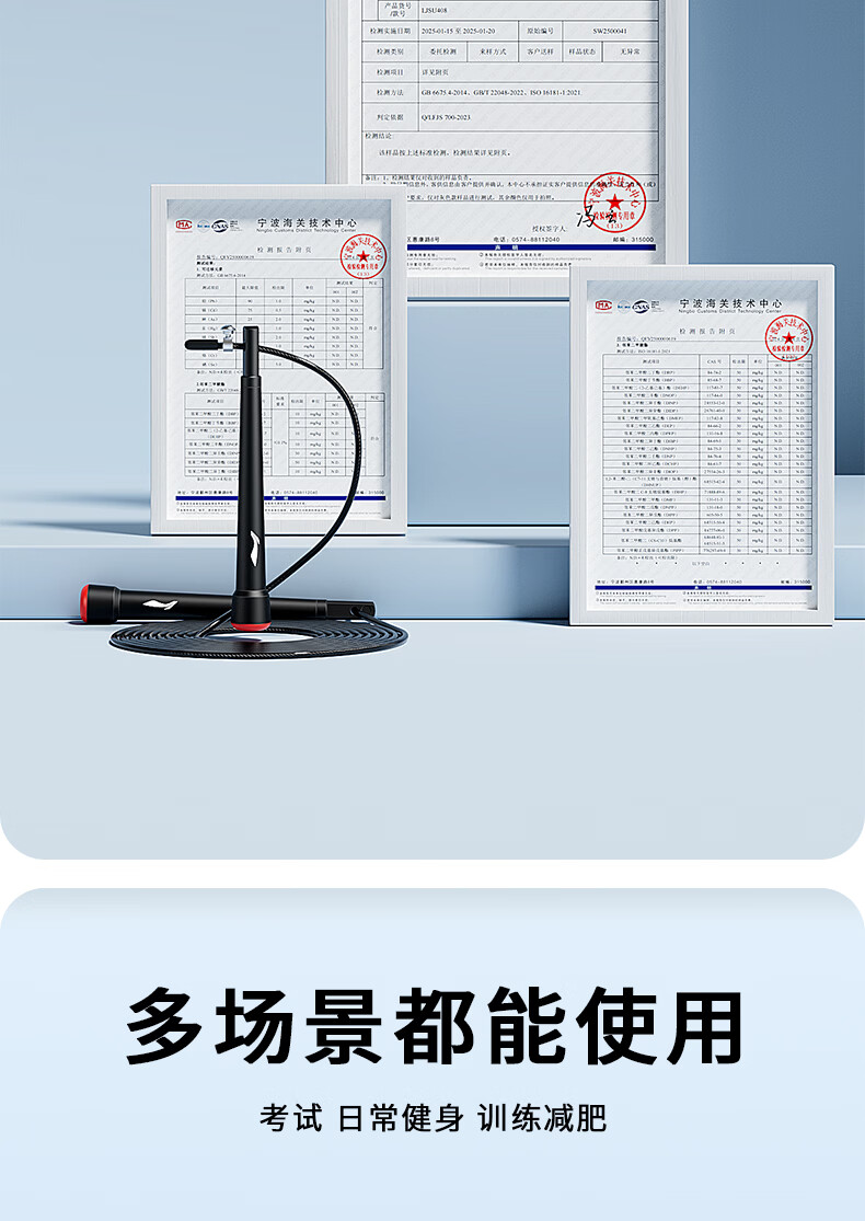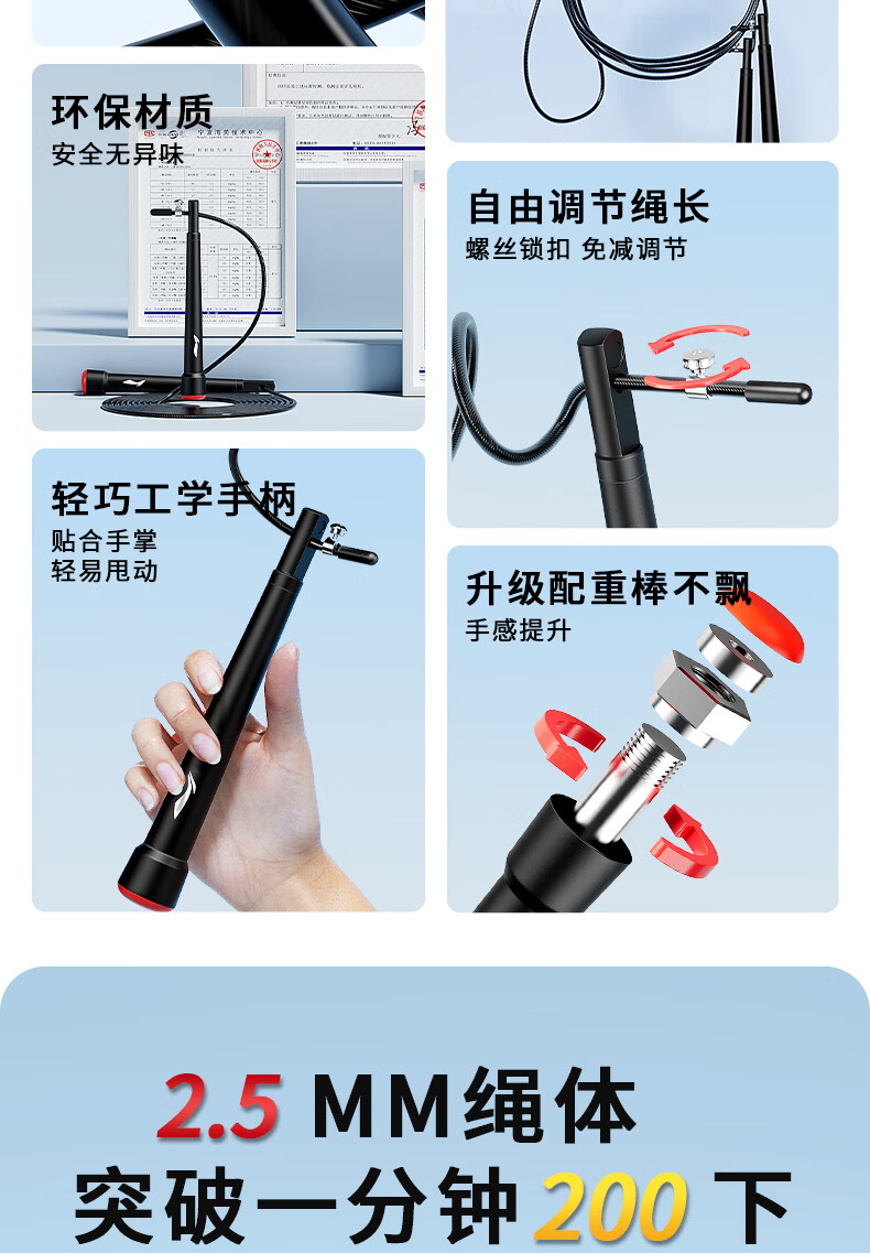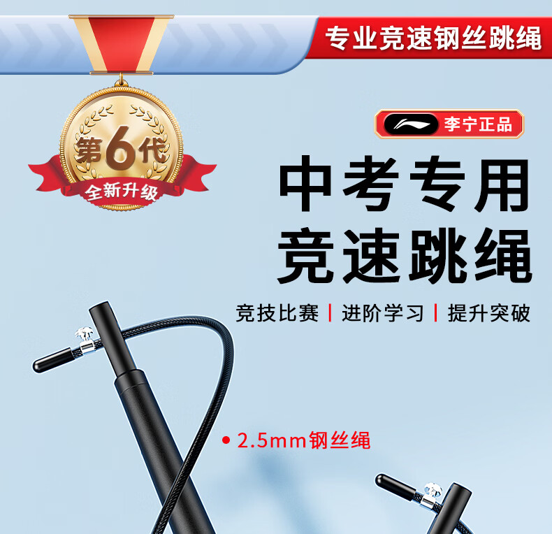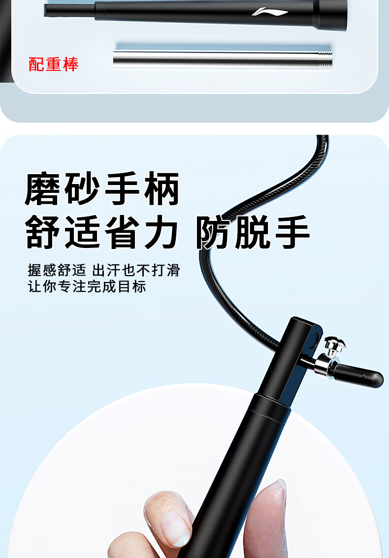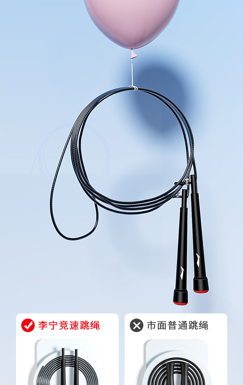 Li Ning (LI-NING) racing rope skipping competition, high school entrance examination, weight loss and fitness special steel wire rope for professional primary and secondary school students, ultra-light double swing rope