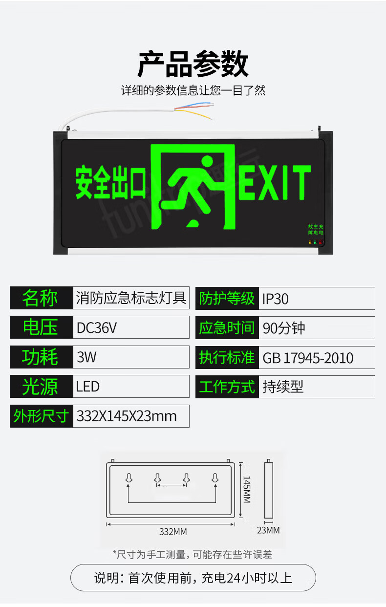 Quxing safety exit indicator light A-type fire emergency evacuation sign light national standard CCC escape lighting single-sided forward