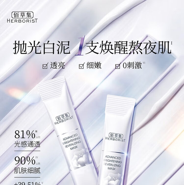 Herborist New Qibai Dabai Mud Second-Purpose Mud Mask 6g*18 (Hydrating and Brightening Skin Care Products for Women) New Year's Gift