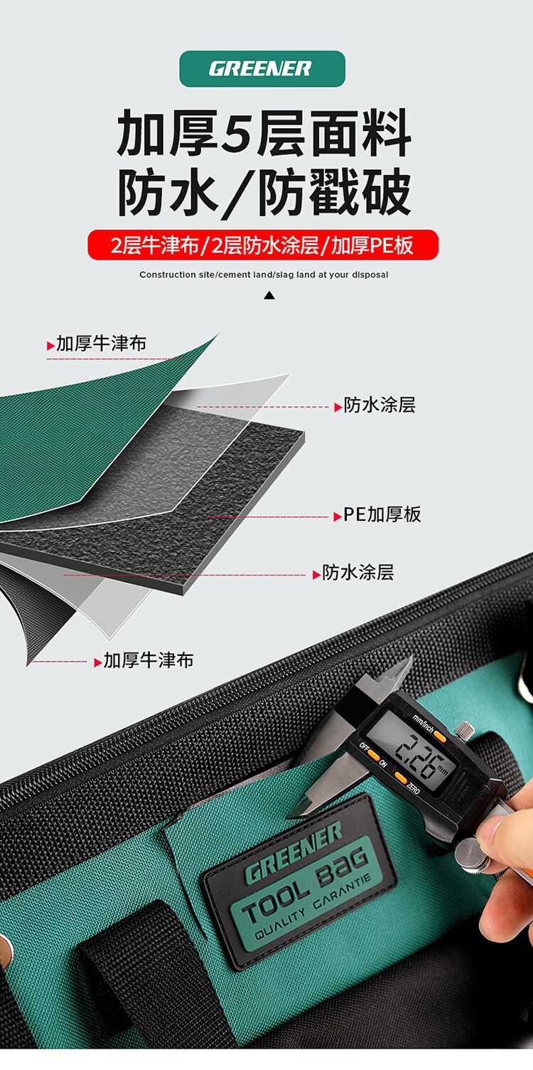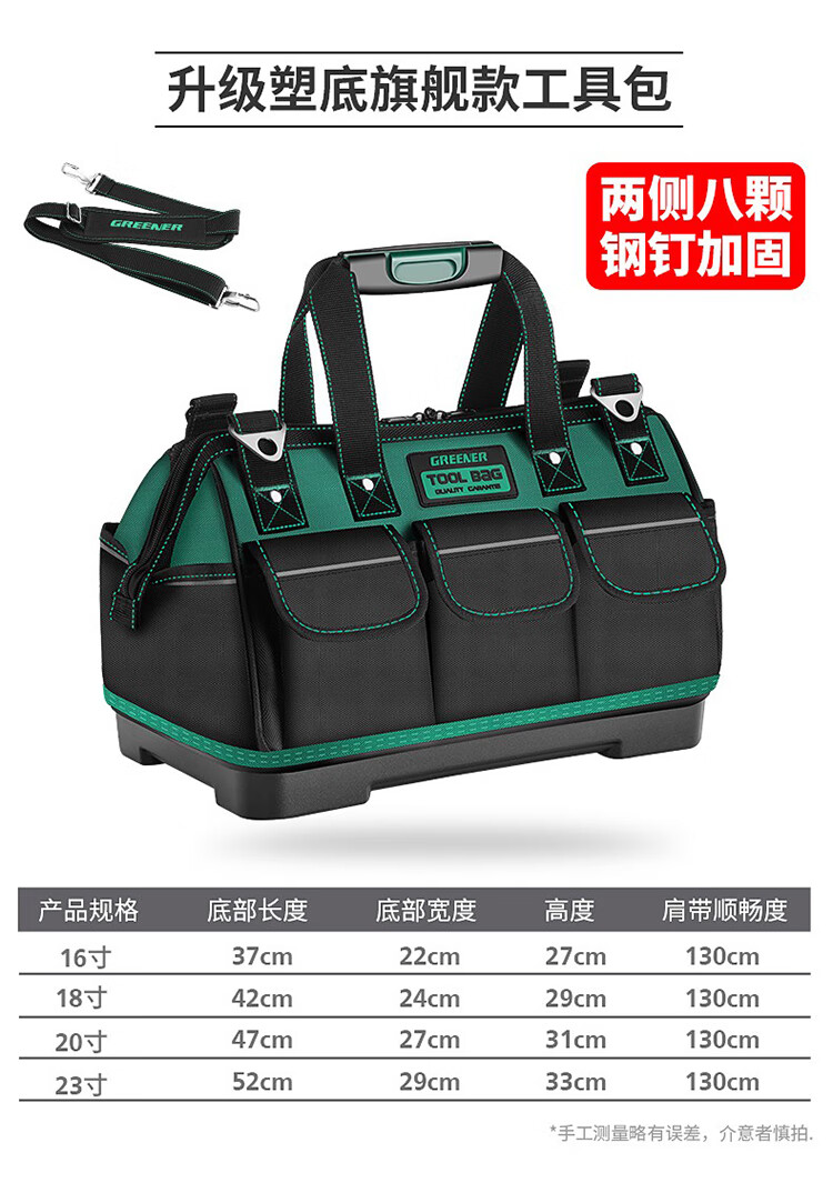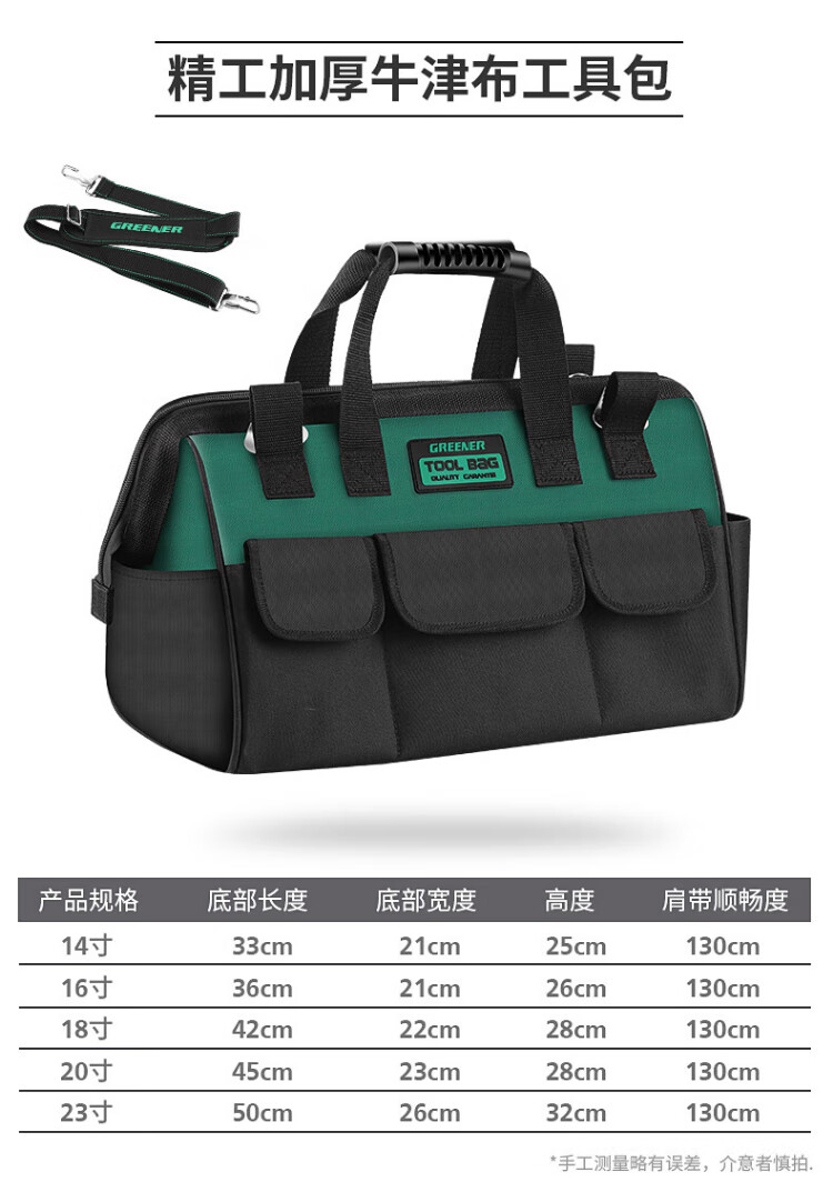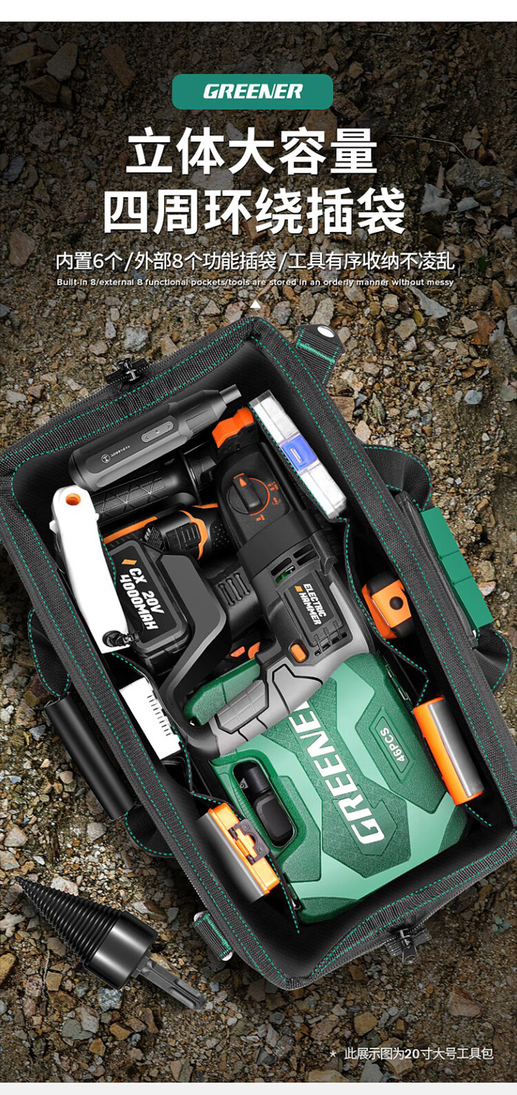 GREENER 16-inch tool bag electrician repair storage bag large-capacity tool bag household carpentry portable Oxford cloth bag
