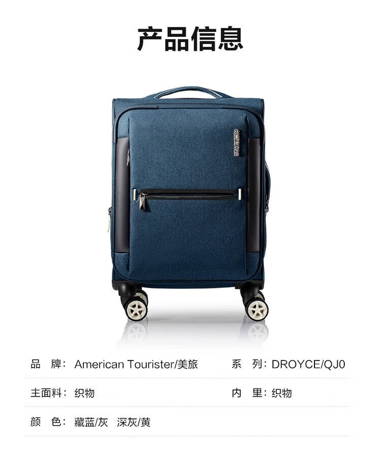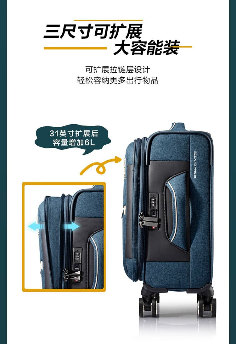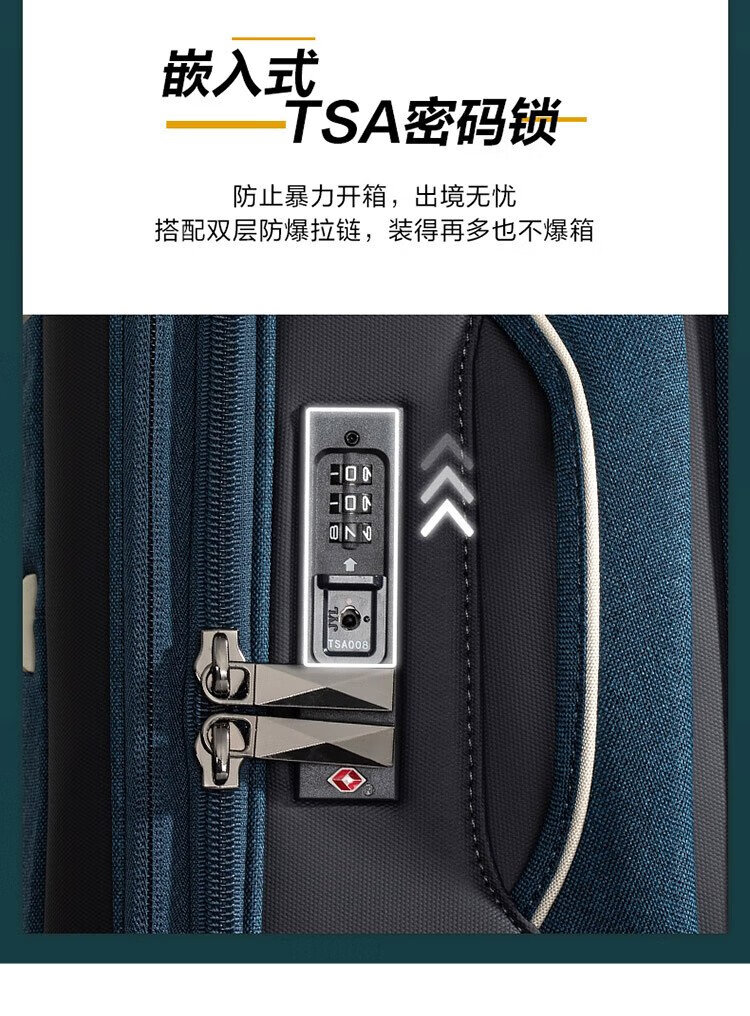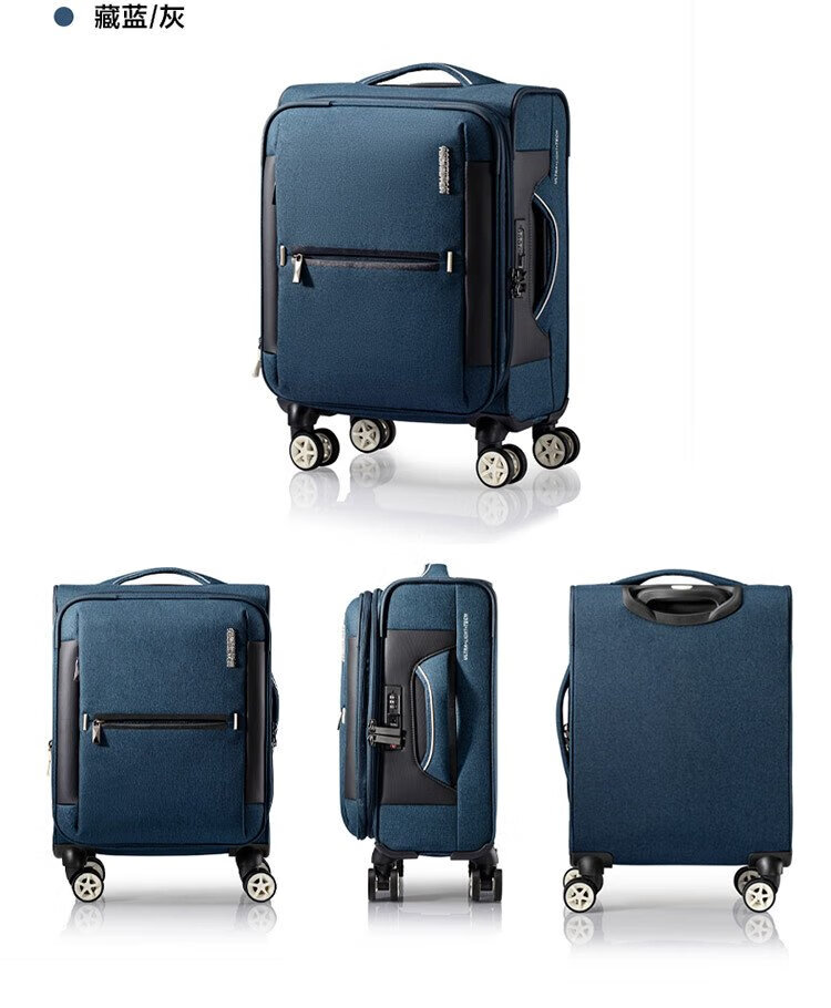 American travel luggage can be carried on the plane 20-inch large-capacity trolley suitcase soft box hidden blue gray QJ0 password box