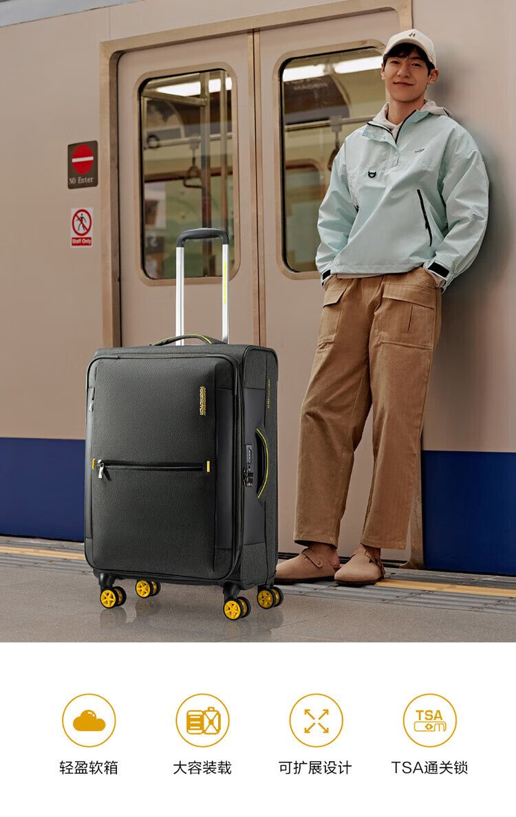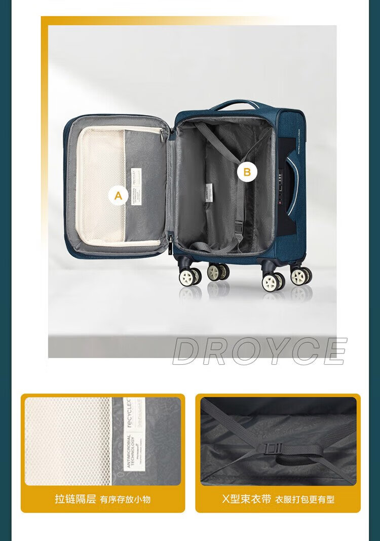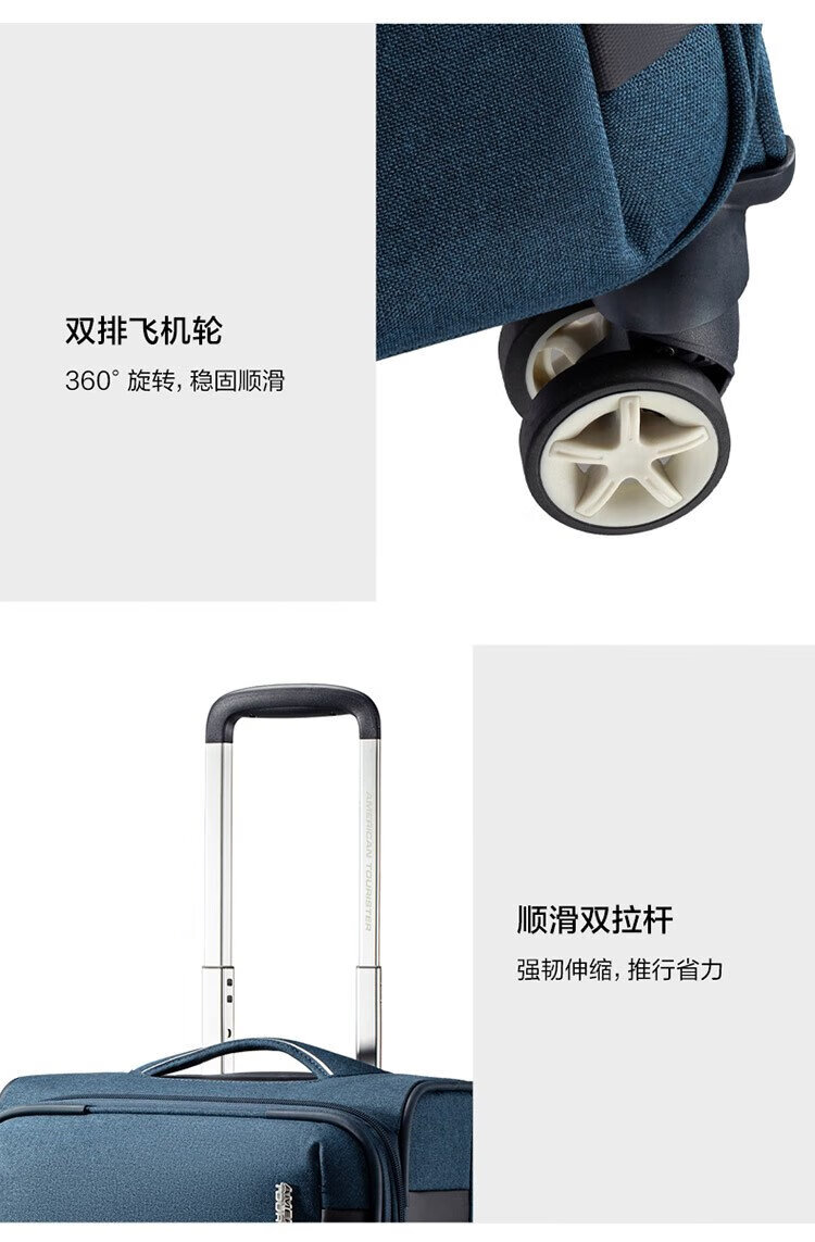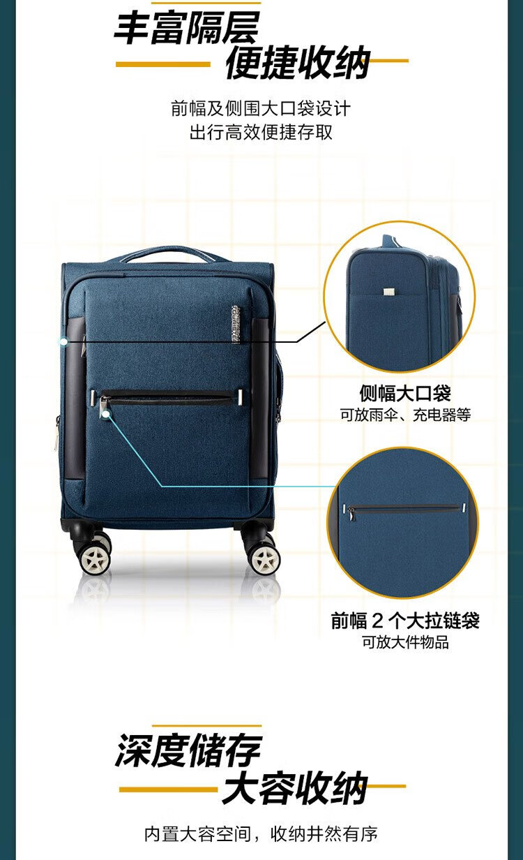 American travel luggage can be carried on the plane 20-inch large-capacity trolley suitcase soft box hidden blue gray QJ0 password box