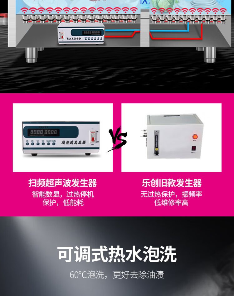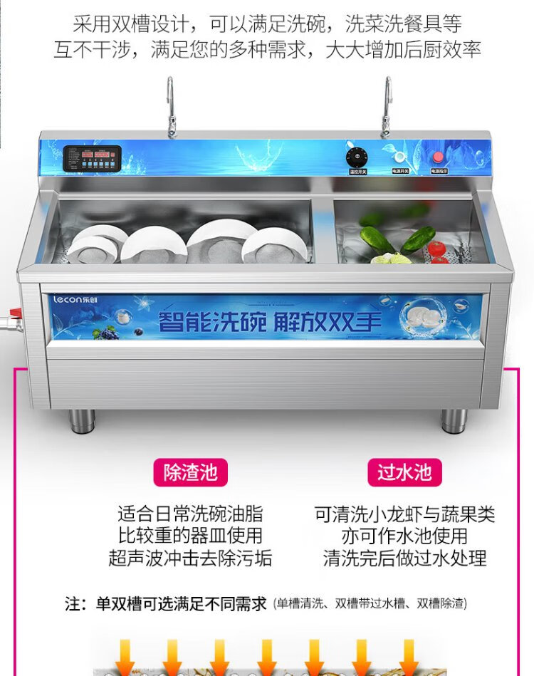 Lechuang ultrasonic dishwasher commercial fully automatic large dishwasher hotel 2.4m ultrasonic dishwasher luxury model double tank one water and one slag removal LC-DK-XWJ24