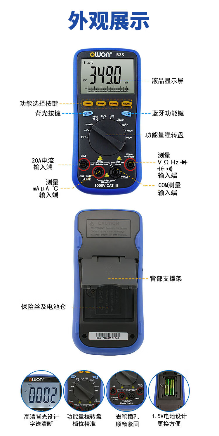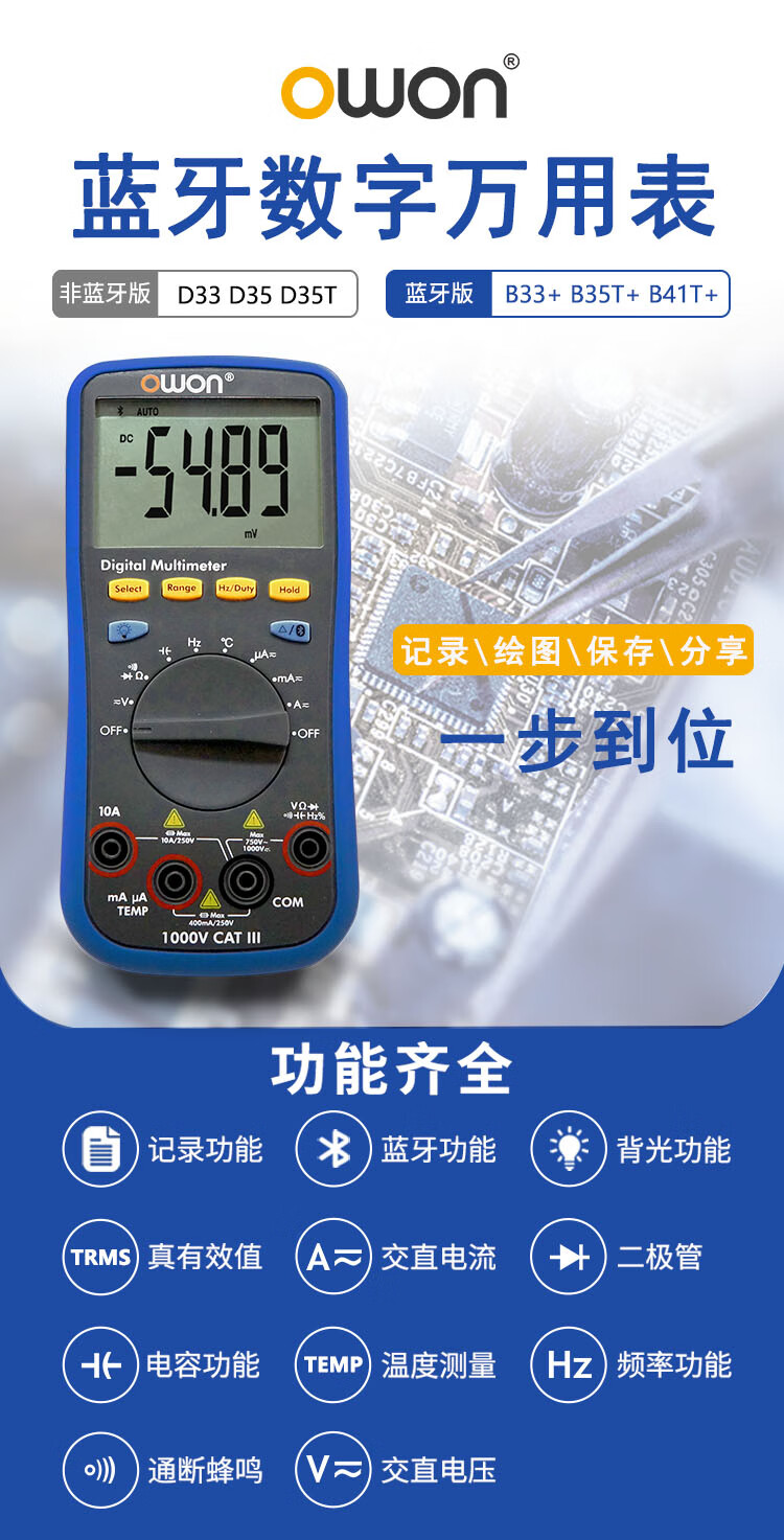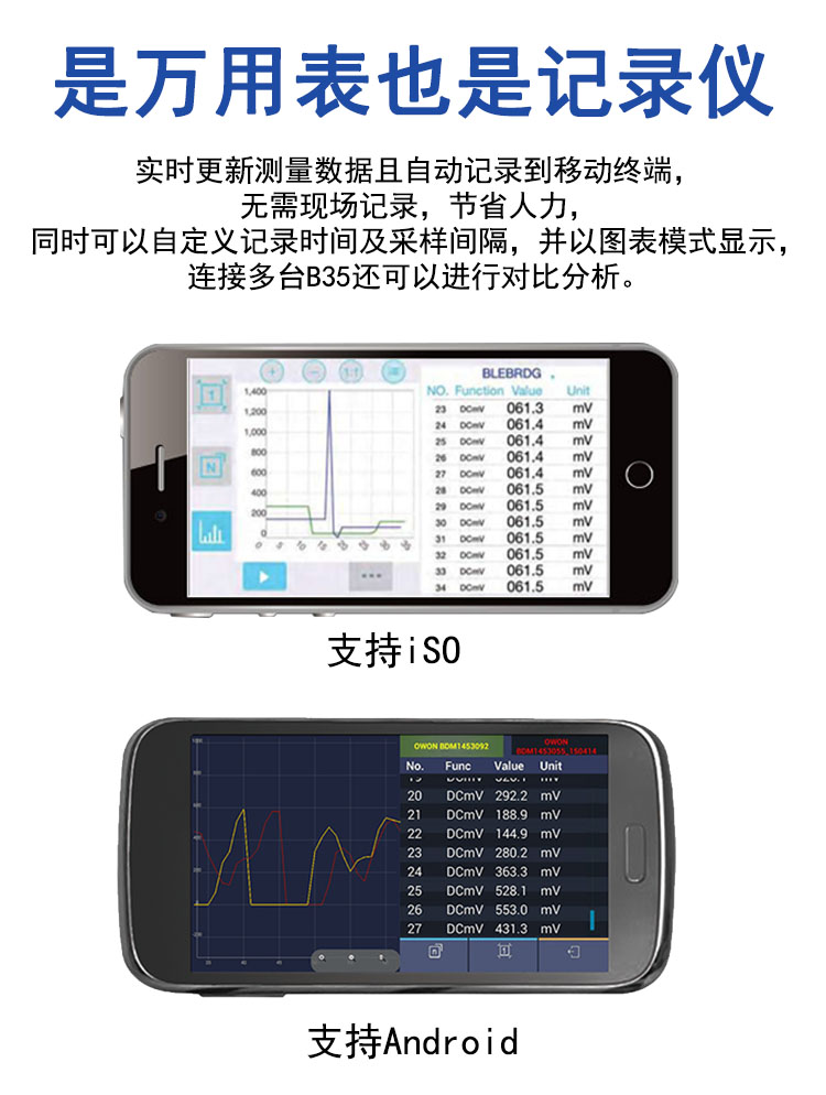 Owon Lilip Bluetooth multimeter B35T+ three and a half high precision automatic range offline recording true effective value