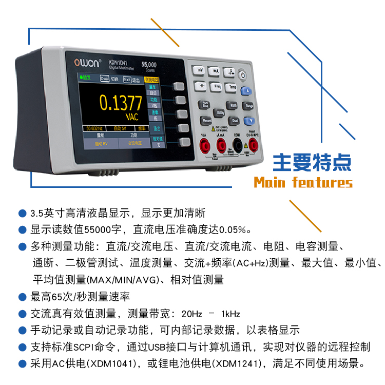 Owon Lilliput mini multimeter XDM1041 four and a half digits 55000 reading repair industrial supporting RS232 interface