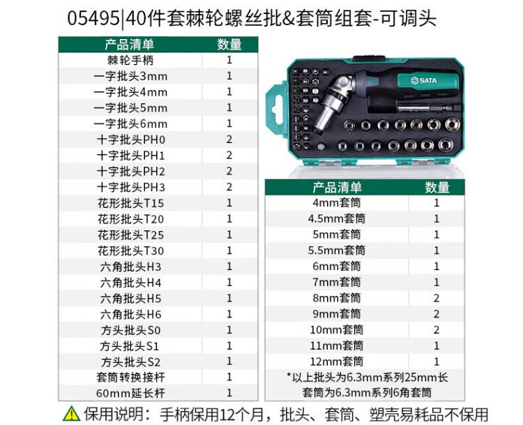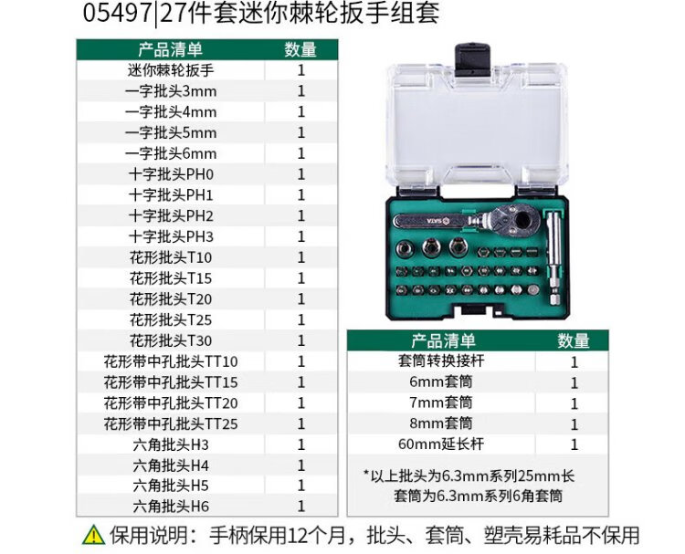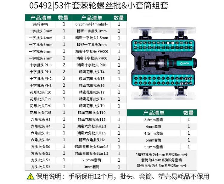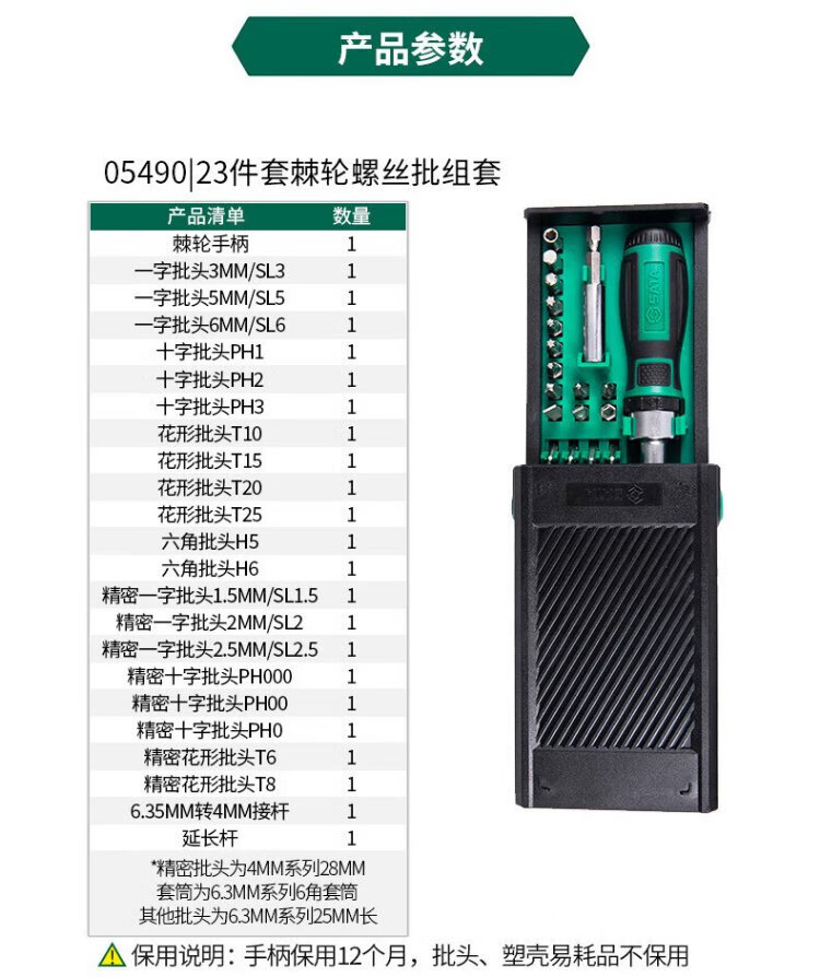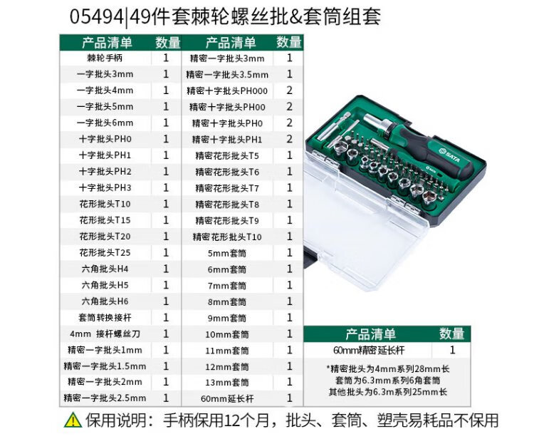 SATA 05494 tool screwdriver set, cross set, small fly ratchet wrench set