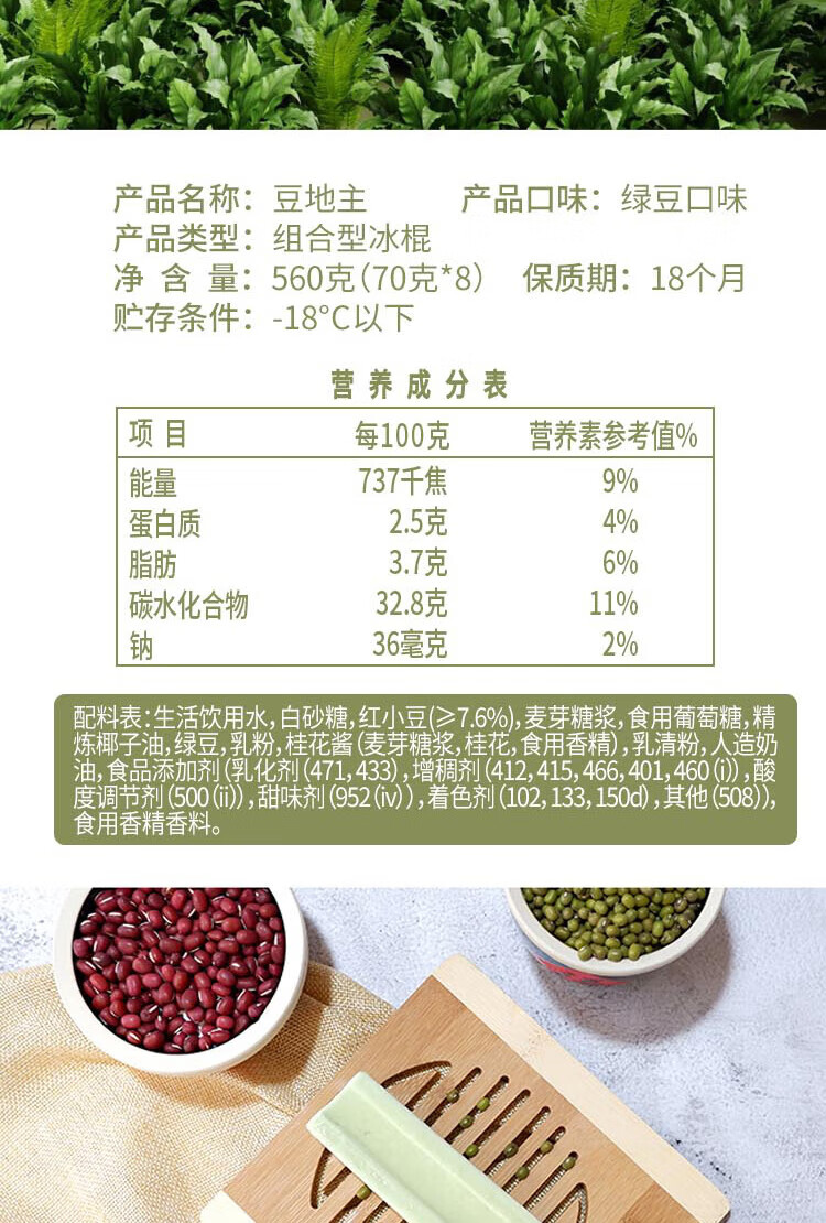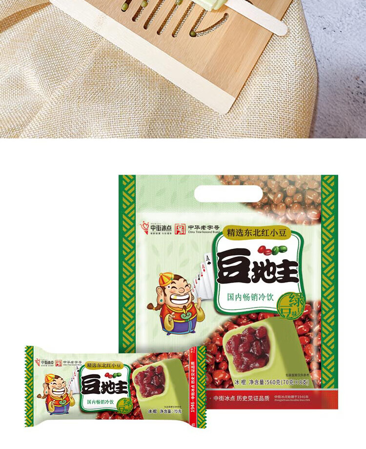 Zhongjie Ice Point Doudizhu red bean and mung bean flavored popsicles 70g*8 sticks fresh ice cream