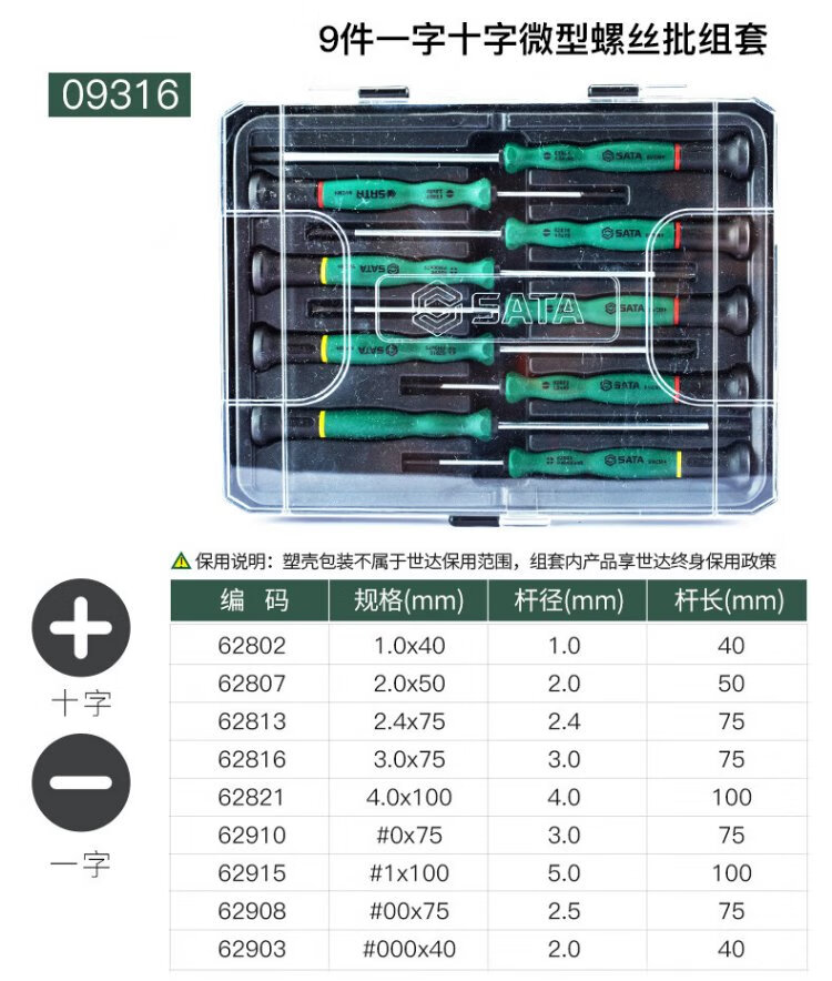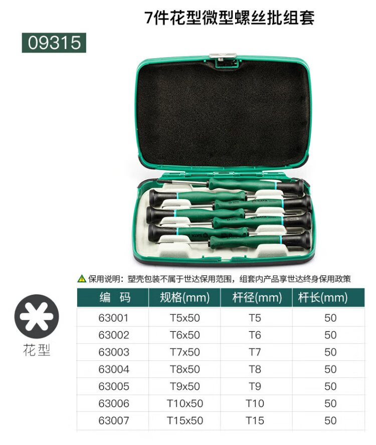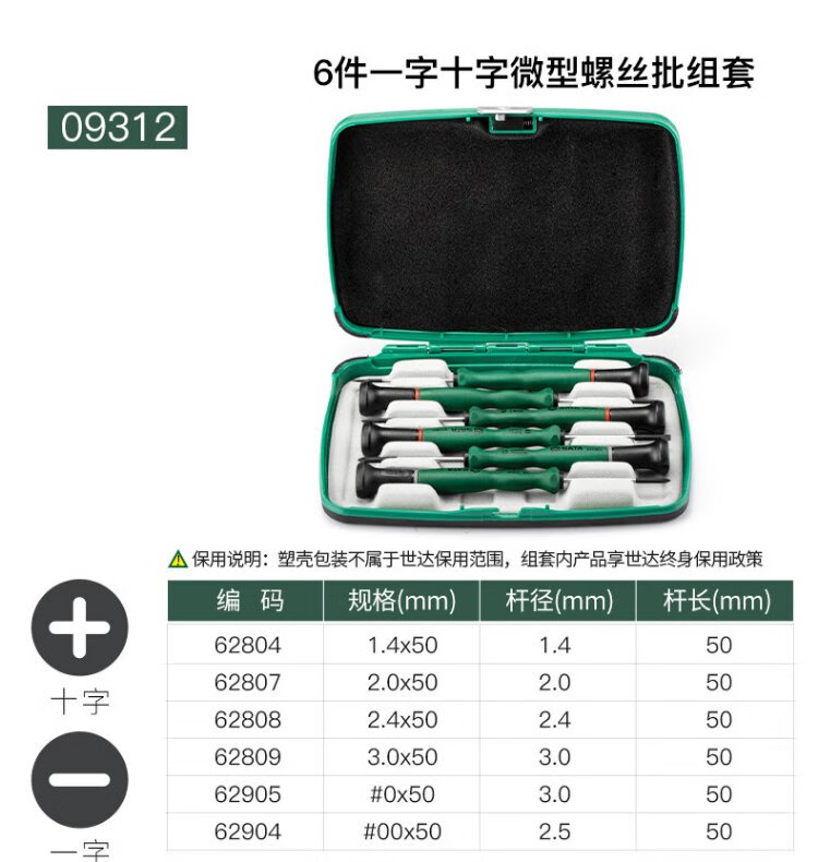SATA 09312 6-piece cross-shaped micro screwdriver household repair and disassembly tool