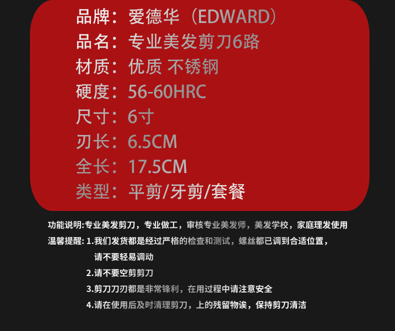 EDWARD hair salon hairstylist professional barber scissors dovetail handle hairdressing scissors hair cutting set C18 cloth leather bag
