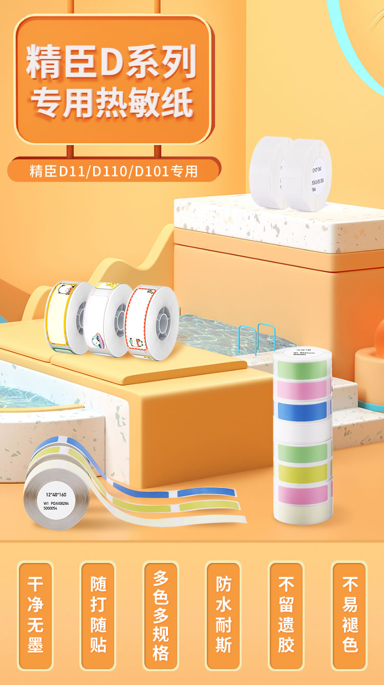 Jingchen Thermal Paper Jingchen D110 Clothing Merchant Super Beauty Office Label Paper 12*40 Bright Yellow Multifunctional Waterproof and Anti-fading Suitable for Jingchen D11/D110