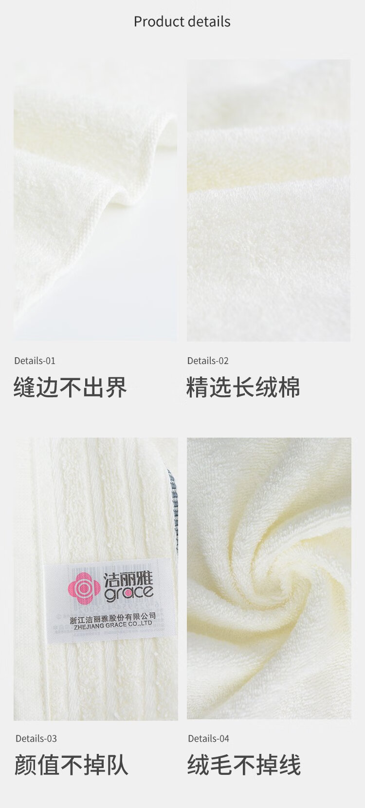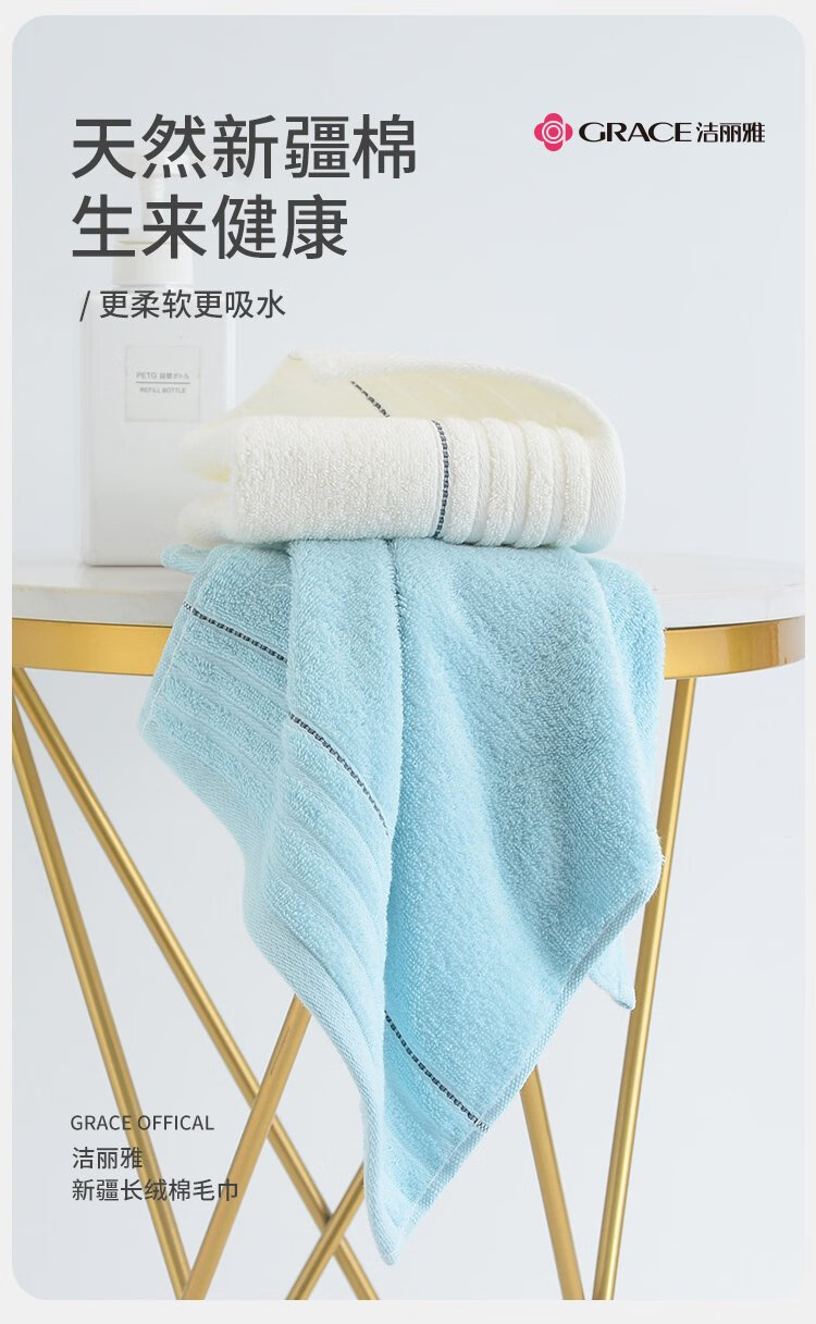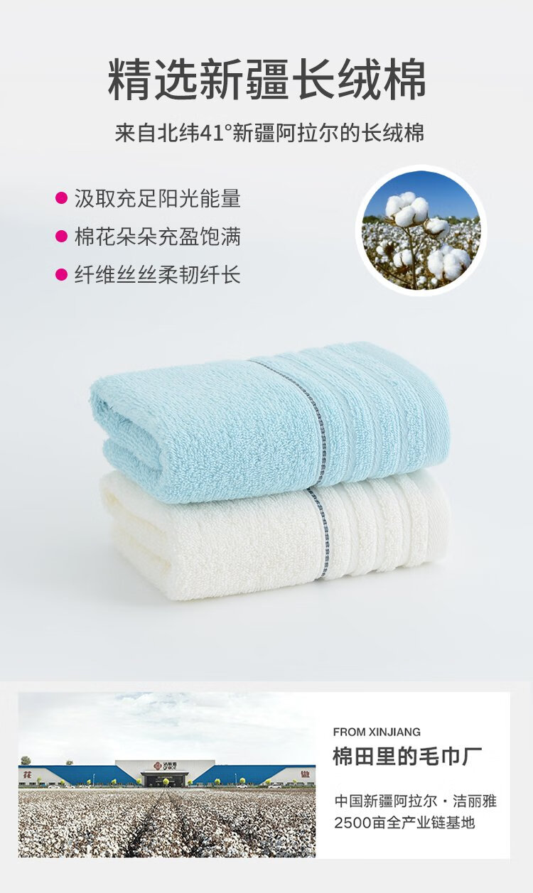 Jie Liya (Grace) Xinjiang long-staple cotton towel 2 pack household soft pure cotton absorbent face washcloth 60*30cm blue + rice