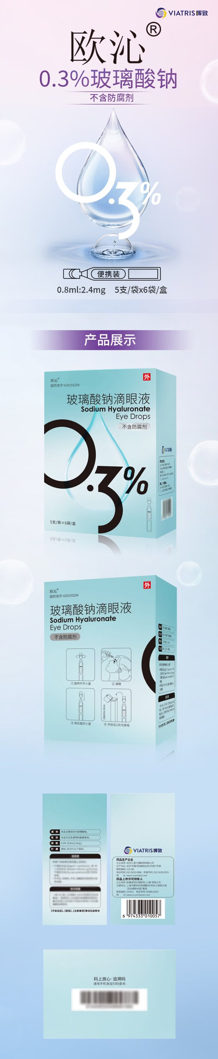Ouqin Sodium Hyaluronate Eye Drops 0.3 (0.8ml 2.4mg)*5 bottles/bag*6 bags/box