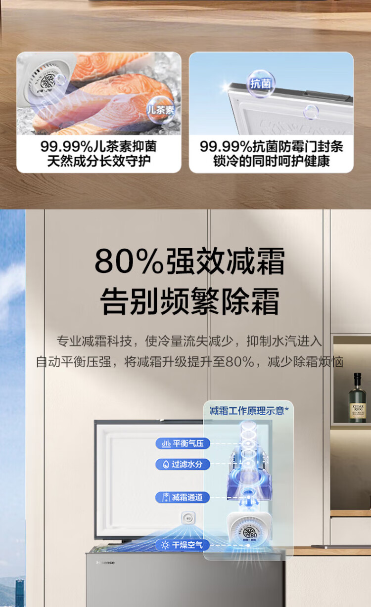 Hisense 200L refrigerated freezer freezer full space sterilization-40 cryogenic fresh-keeping horizontal large-capacity household and commercial first-class energy efficiency and energy saving BD/BC-200S3HNGQX
