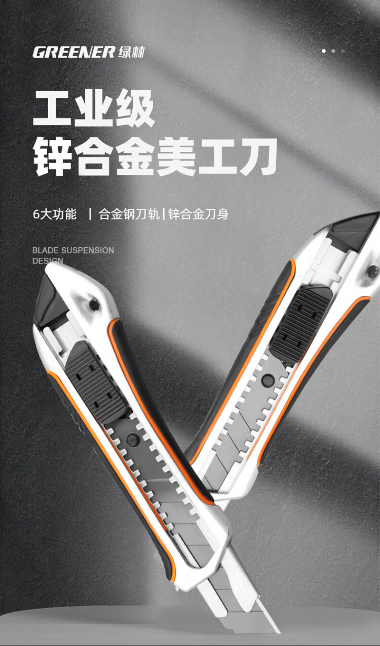 GREENER heavy-duty household utility knife wallpaper knife express knife electrician knife push button self-locking large 18mm zinc alloy