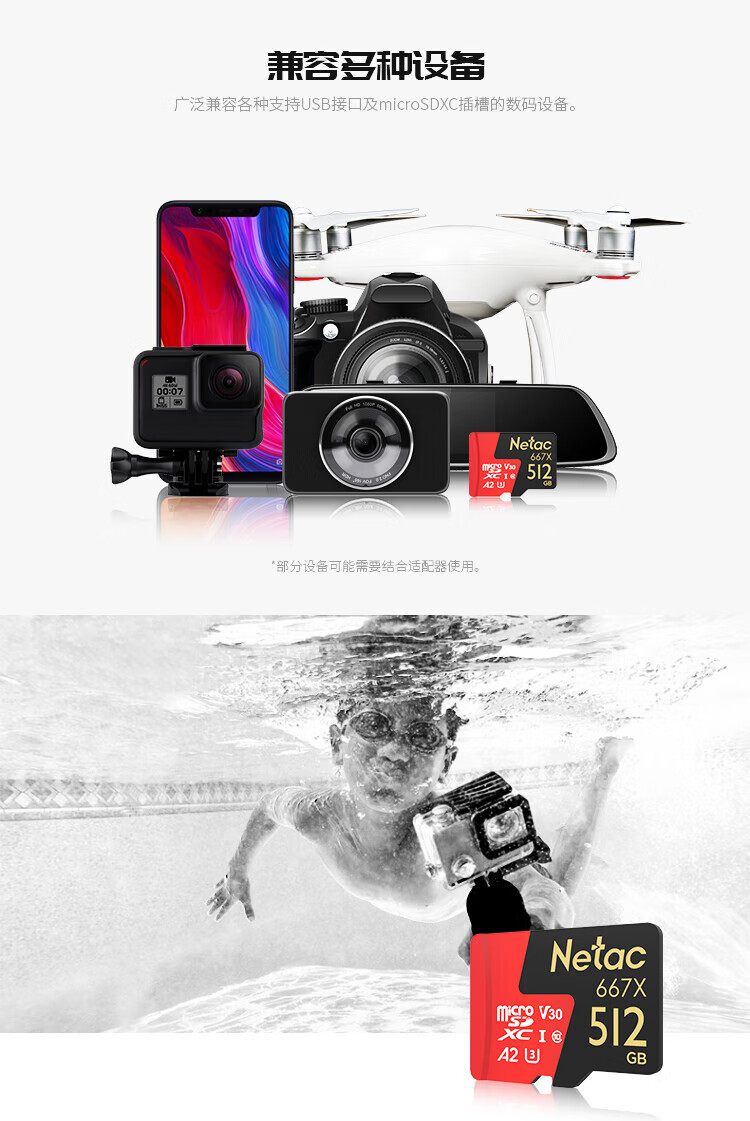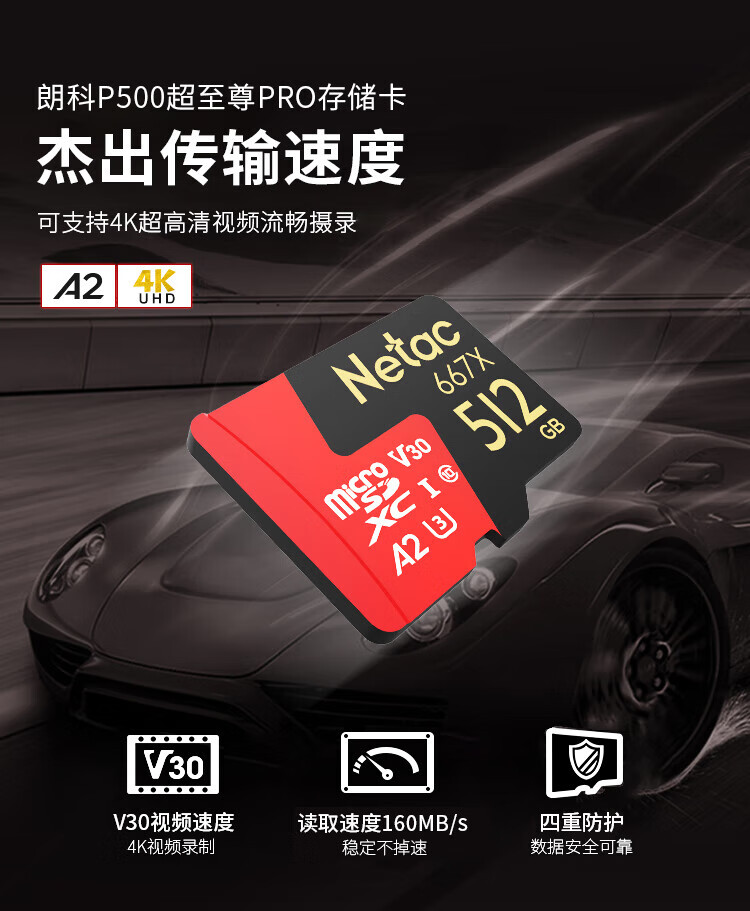 Netac 512GB TF (MicroSD) memory card U3 A2 4K Ultra Supreme PRO version, suitable for DJI action camera gopro memory card, reading speed 160MB/s