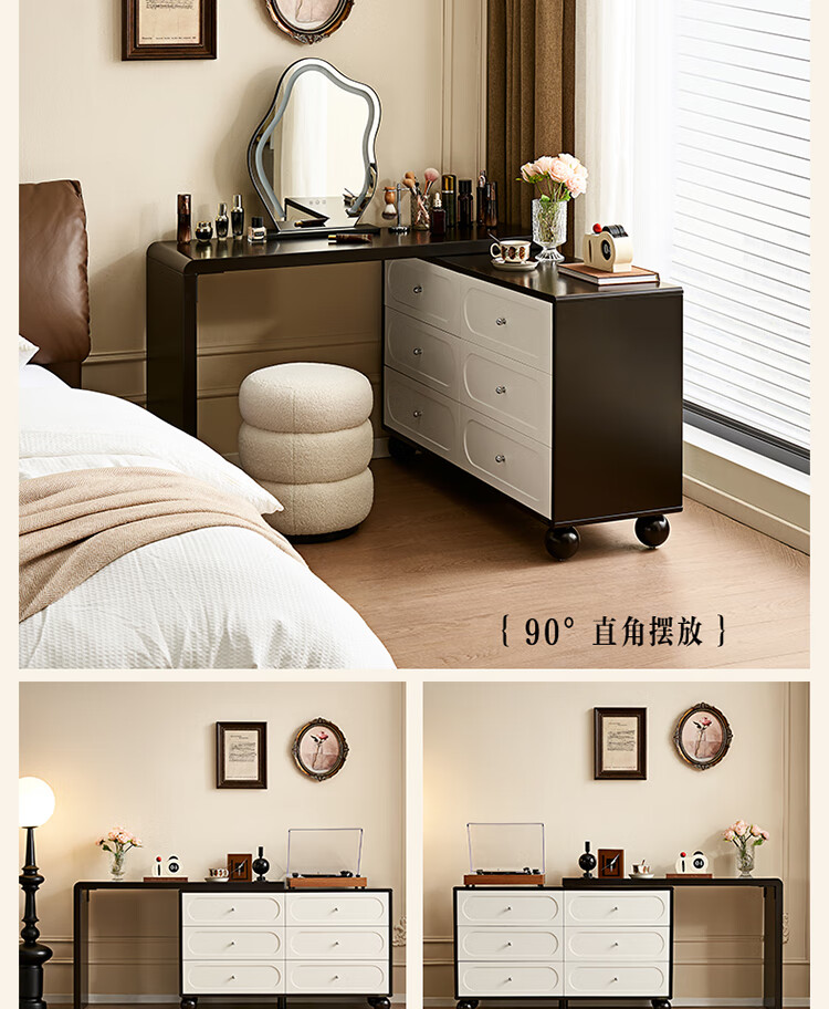 Quanyou Home French Retro Bucket Cabinet Dresser Integrated 2024 New Solid Wood Leg Storage Corner Cabinet Furniture