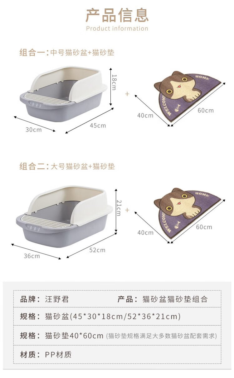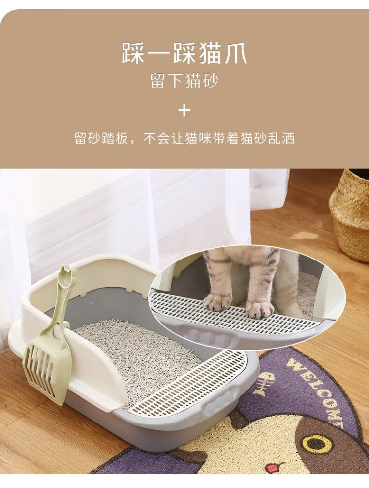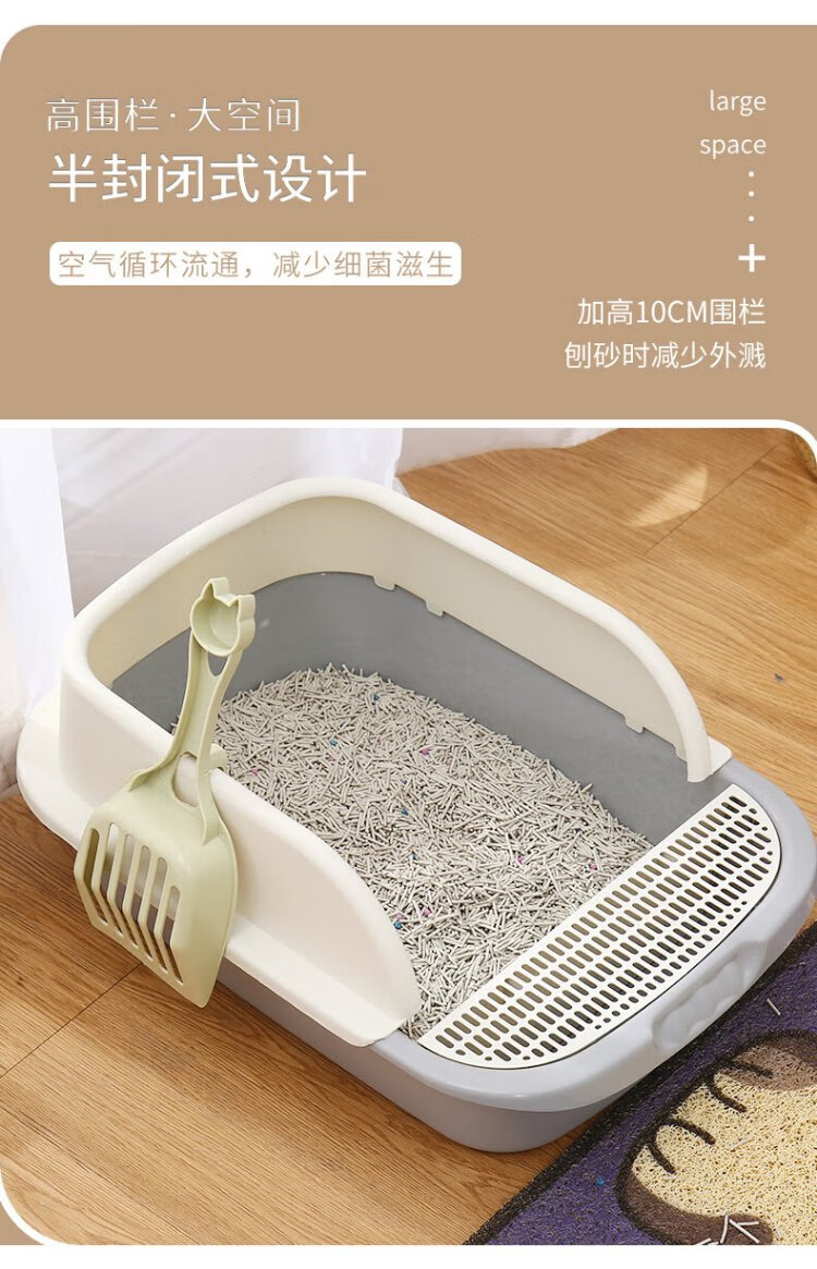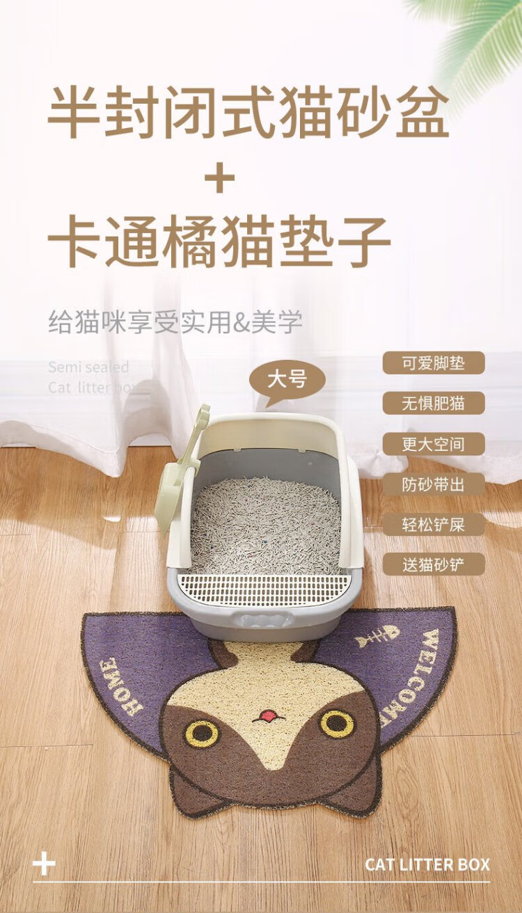 Wang Yejun anti-splash cat litter box semi-closed top-in cat toilet cat litter box cat litter scoop cat litter box large with cartoon cat litter mat