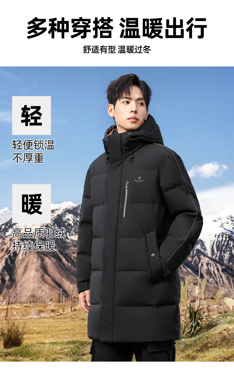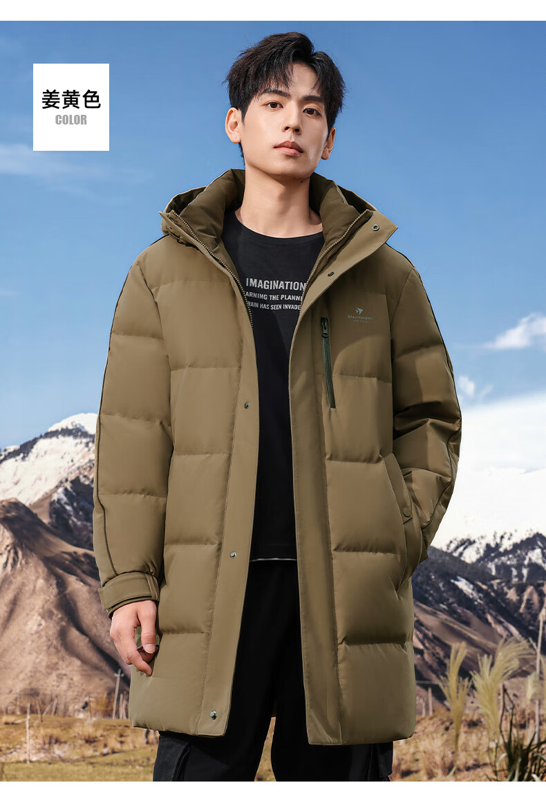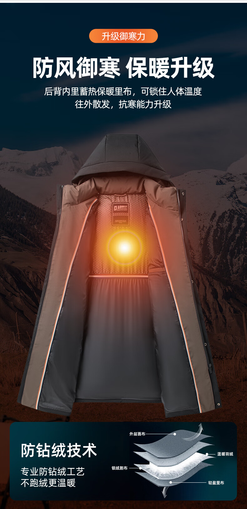 YAYA graphene mid-length hooded down jacket men's 2024 winter new thickened warm jacket for young and middle-aged people