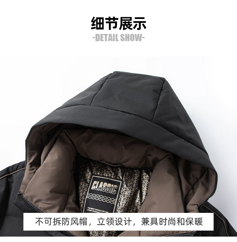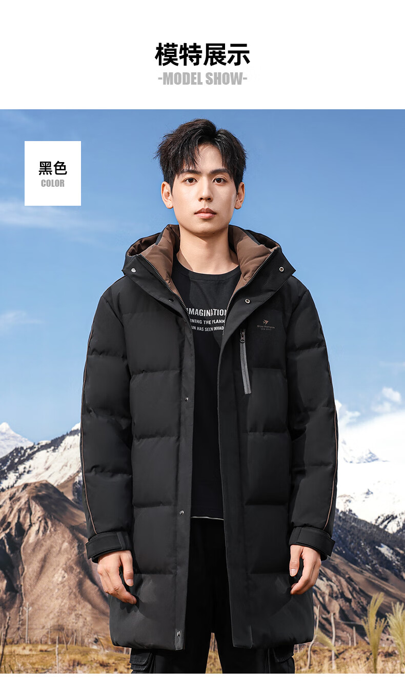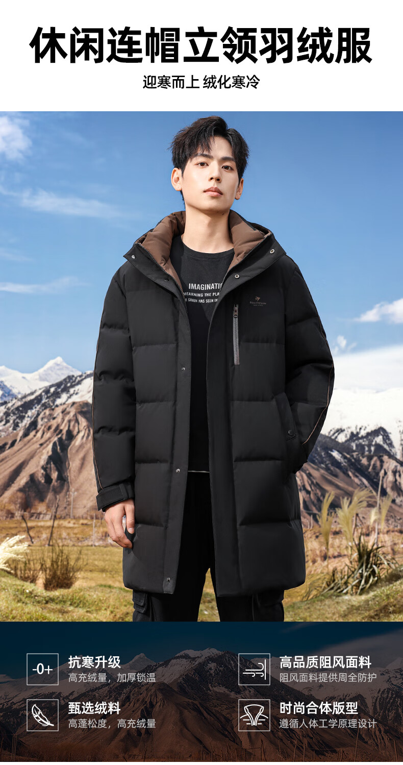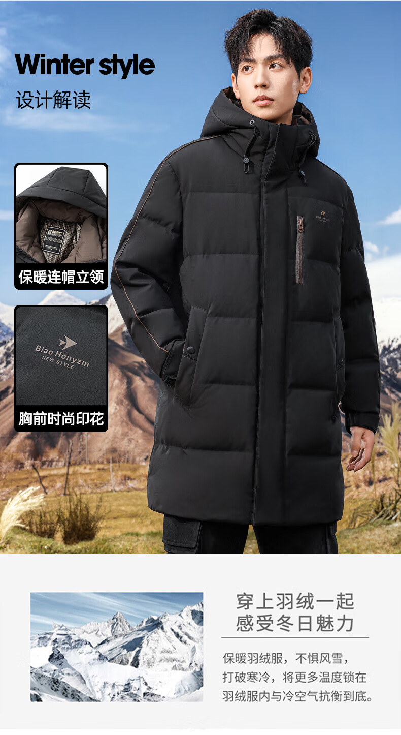 YAYA graphene mid-length hooded down jacket men's 2024 winter new thickened warm jacket for young and middle-aged people