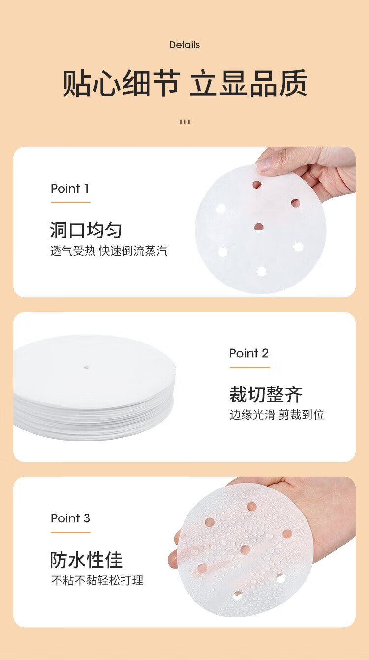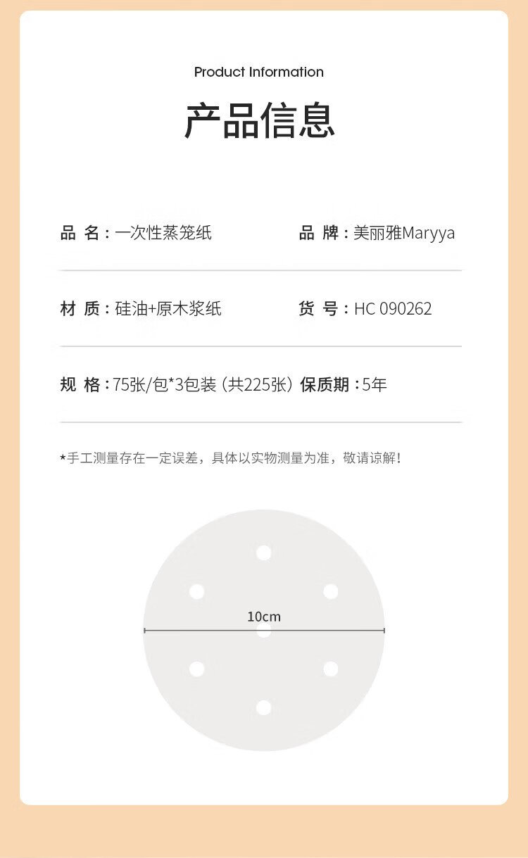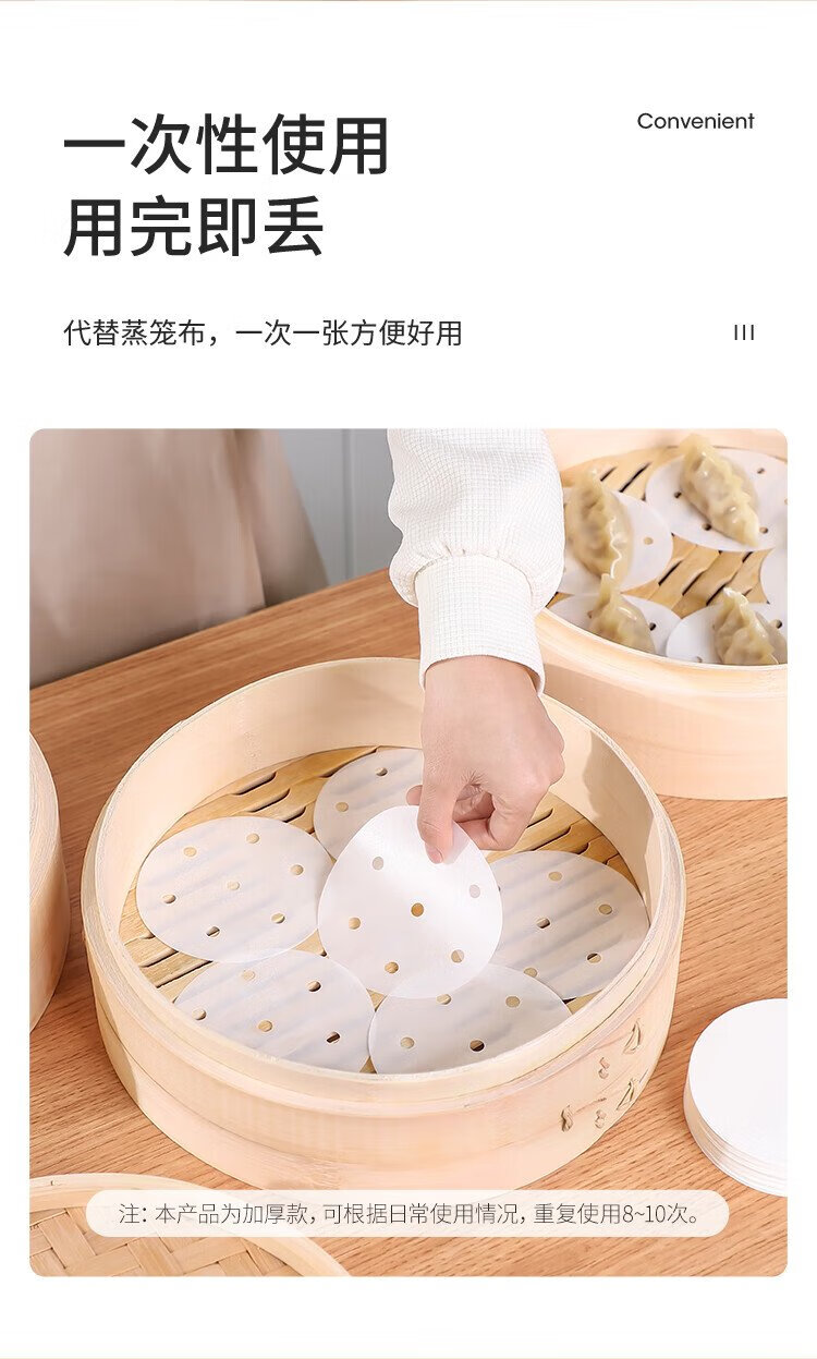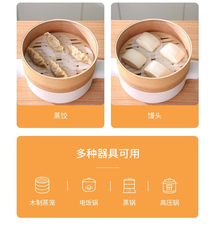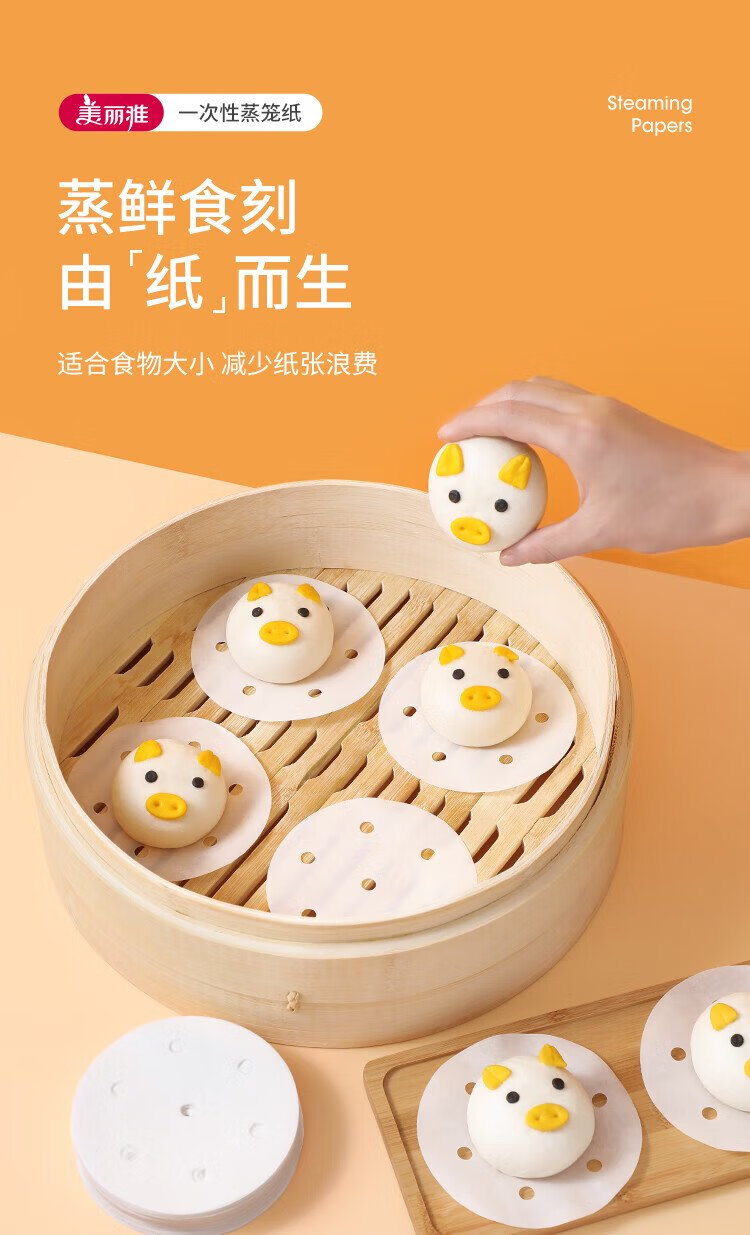 Meiya disposable steamer paper buns steamed bun pad paper non-stick household steamer drawer paper 10cm 75 sheets x 3 bags