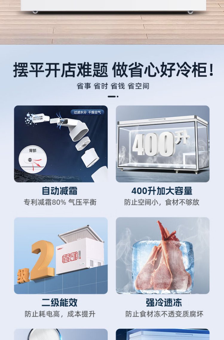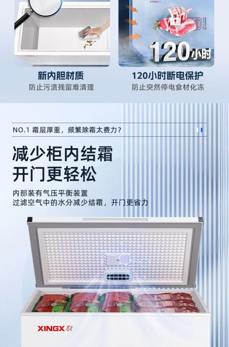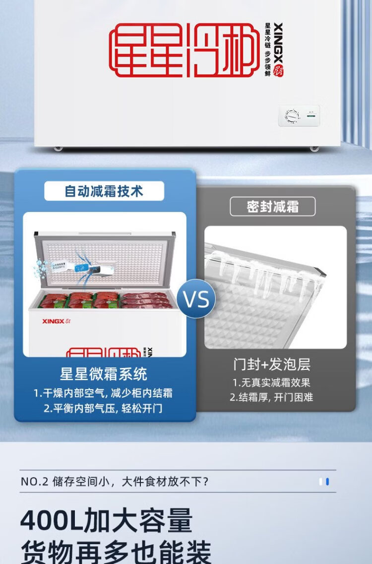 Star (XINGX) 400L commercial freezer micro-frost freezer large-capacity refrigerator refrigeration frozen fresh-keeping energy-saving top-opening cabinet frost-reducing single box horizontal freezer BD/BC-400R national subsidy