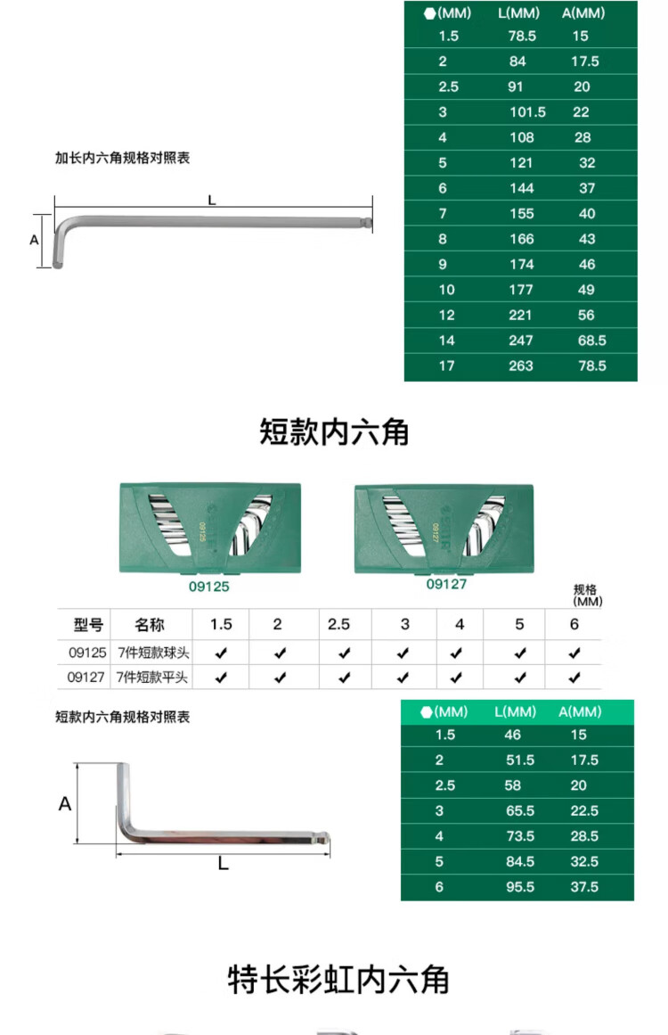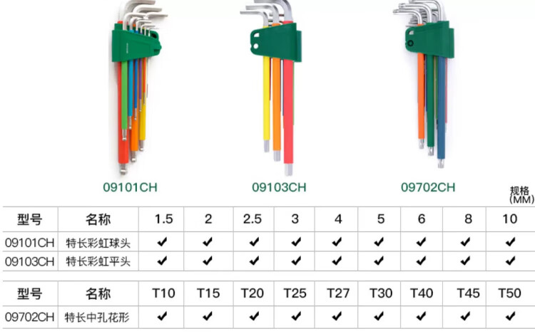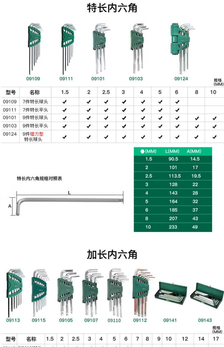 SATA 14-piece extended ball head hex wrench set 1.5-17mm 09141