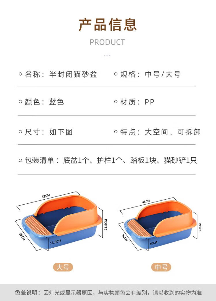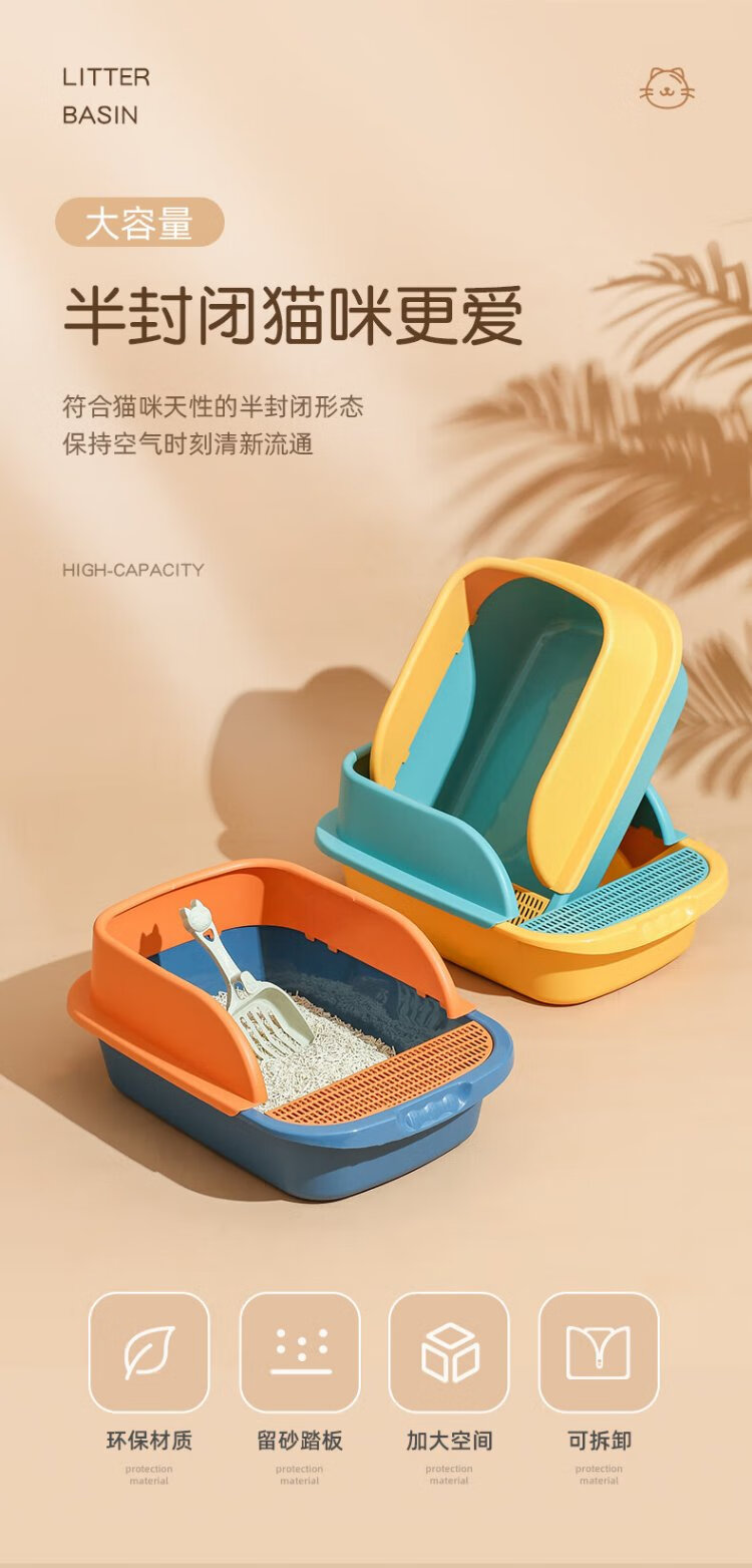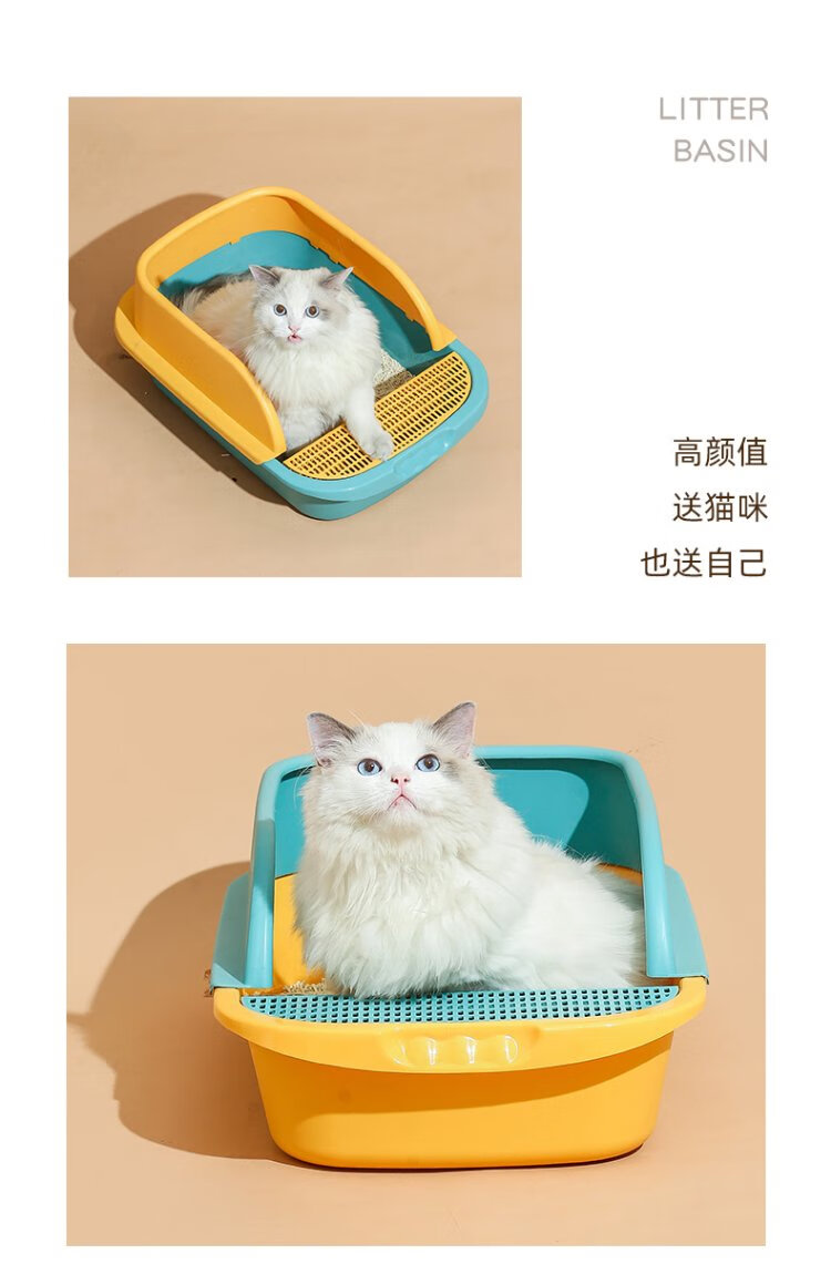 Wang Yejun cat litter box semi-enclosed top-in cat toilet to prevent splashing kitten adult cat cat litter box cat litter box with cat litter shovel large