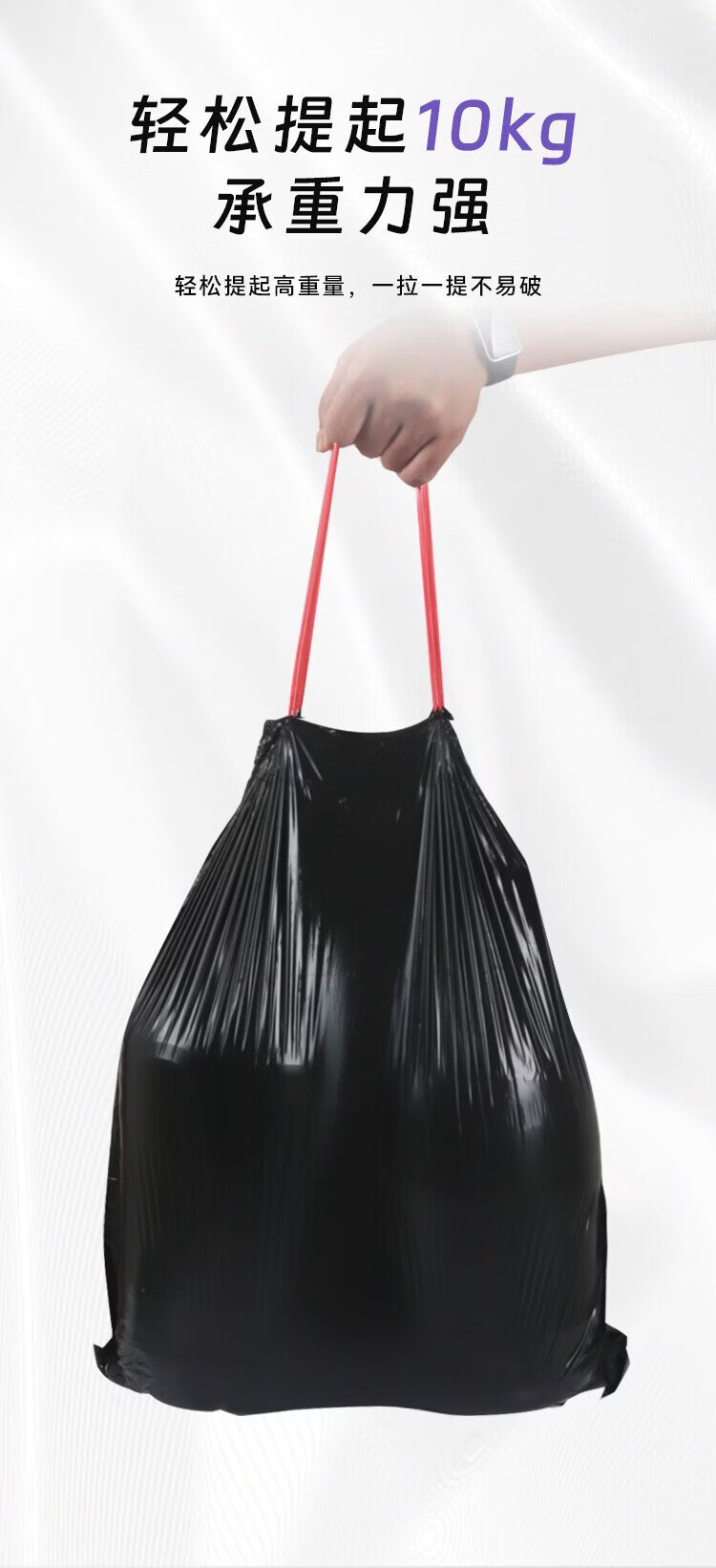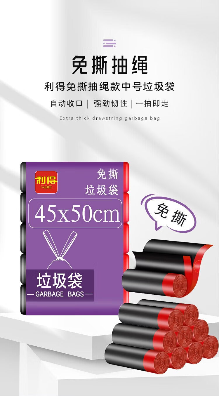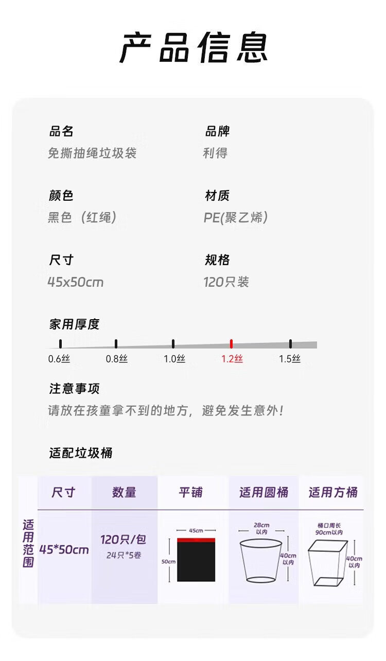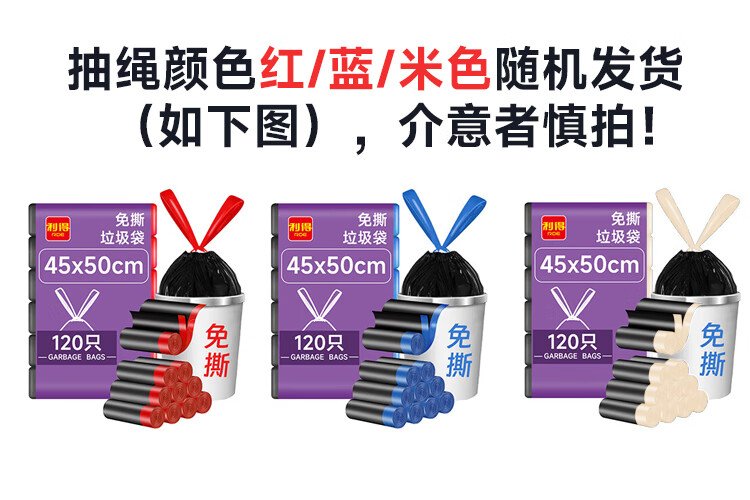Lide drawstring garbage bags black 45*50cm 120 pieces single side 1.2 silk tear-free thickened kitchen use