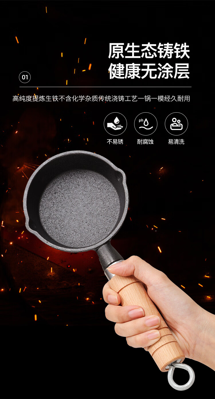MAXCOOK hot oil frying pan, cast iron uncoated frying pan 10CM, mini frying pan MCJ2051