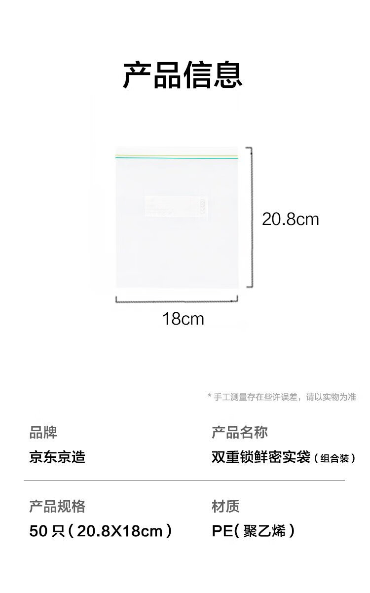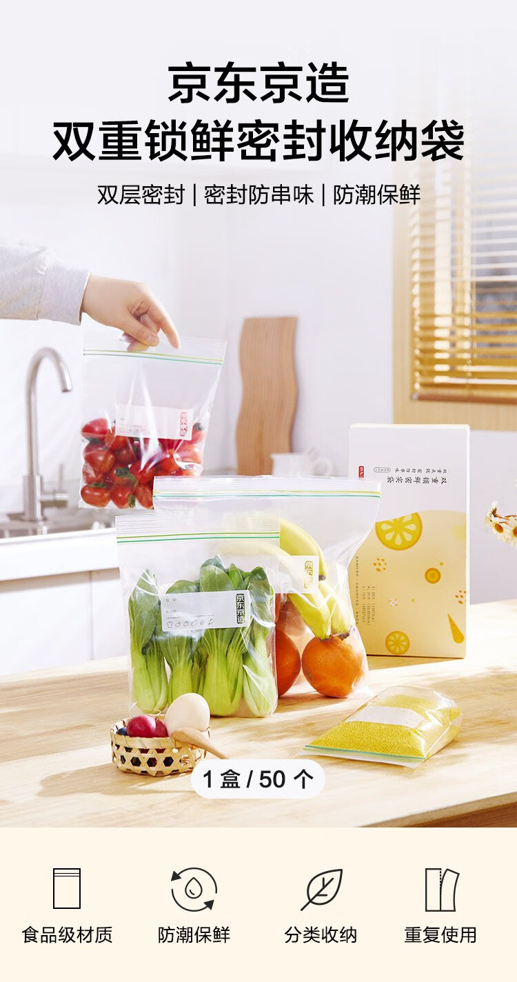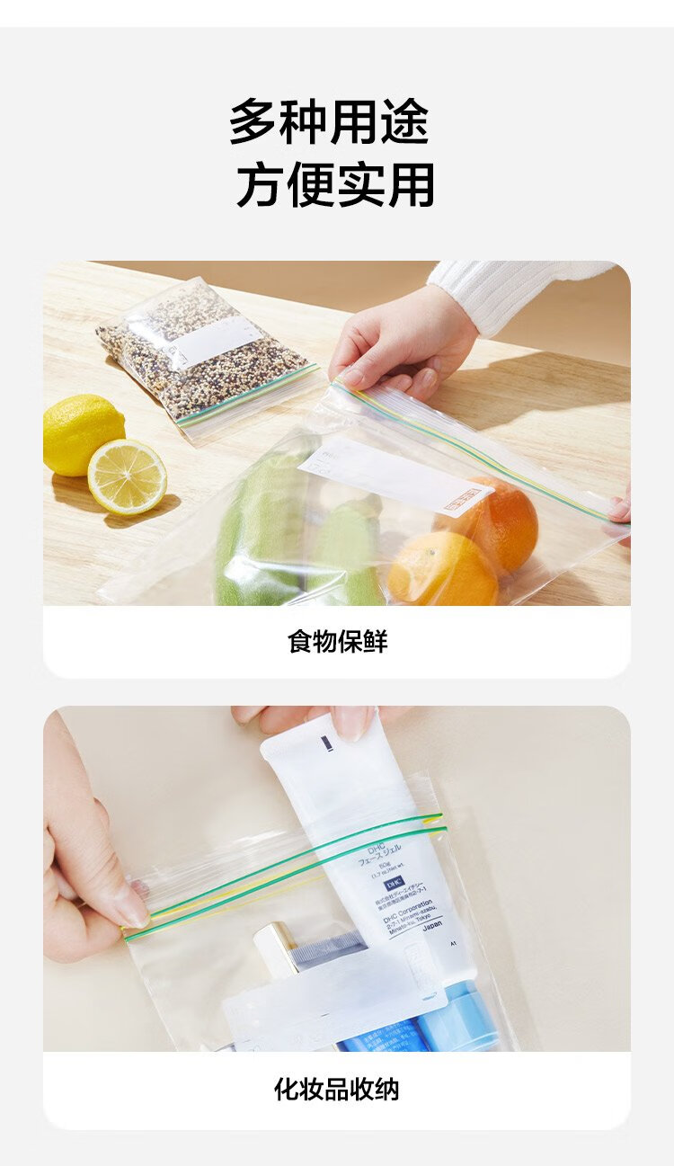 Made in Tokyo, sealed bags, food-grade fresh-keeping bags, barbecue camping medium double zipper dense bags 18*20.8cm, 50 pieces