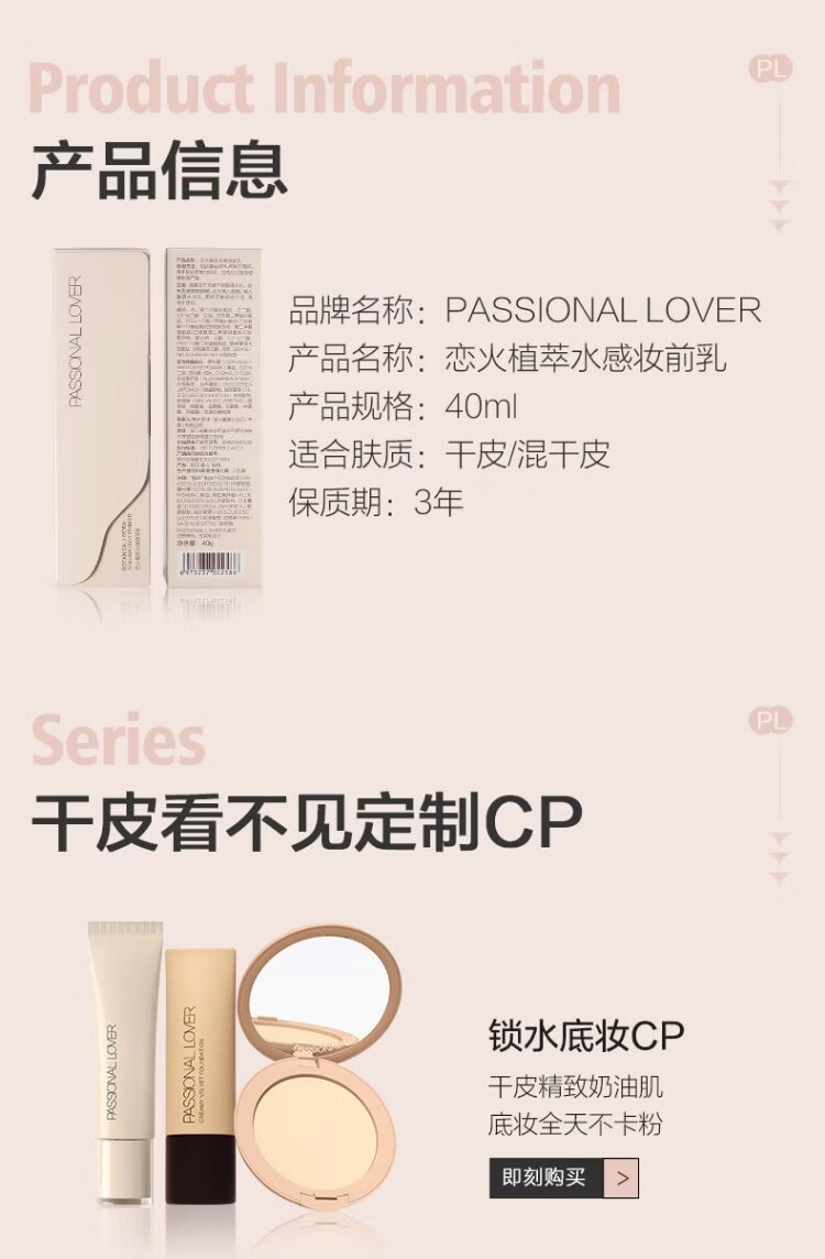 Passional LoverPL Invisible Makeup Primer 40g Moisturizing and Moisturizing Transparent Primer for Dry Skin New Year's Gift for Women